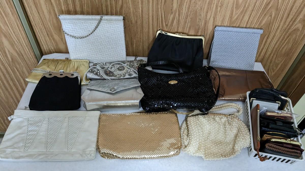 a great assortment of vintage and contemporary made to look vintage ladies purses and a couple of vintage wallets. Also includes a good amount of coin purses and small pouches. bdrm1