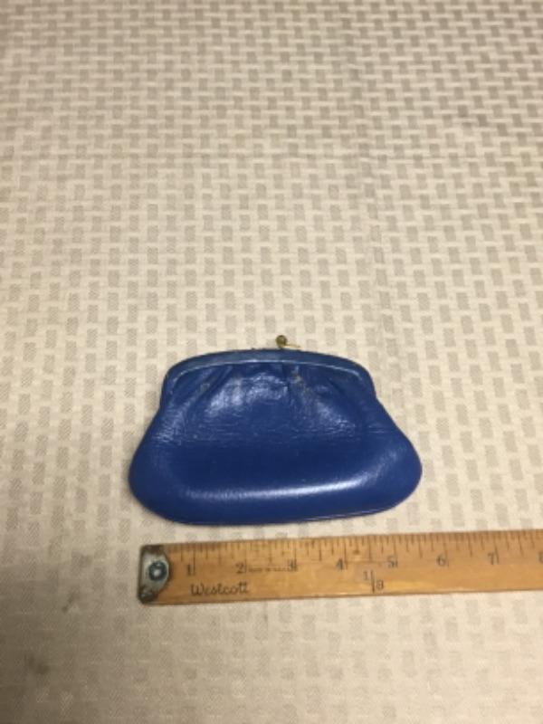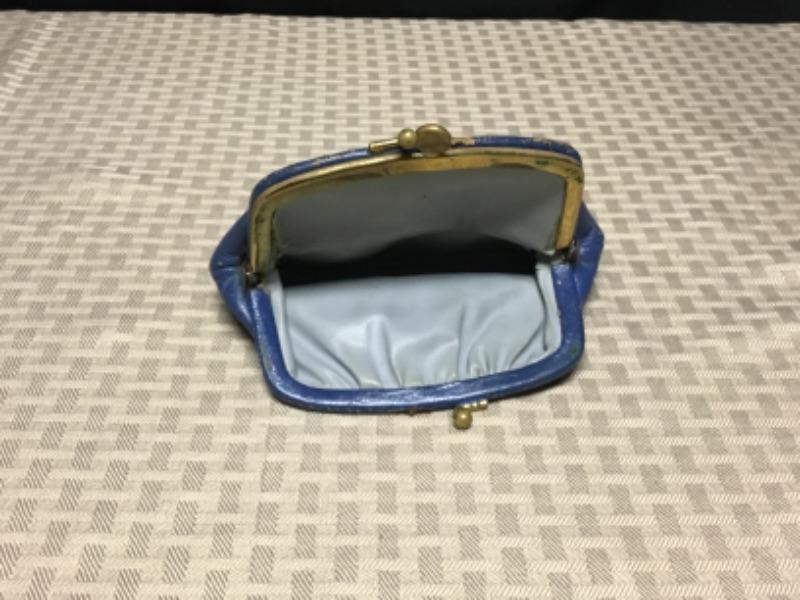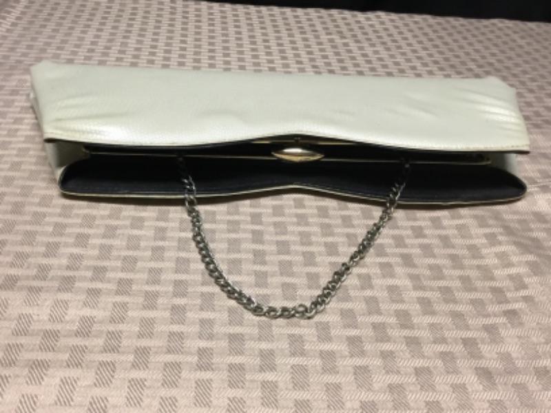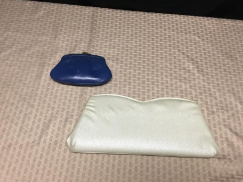 Vintage white clutch purse and small blue coin purse. Good condition.