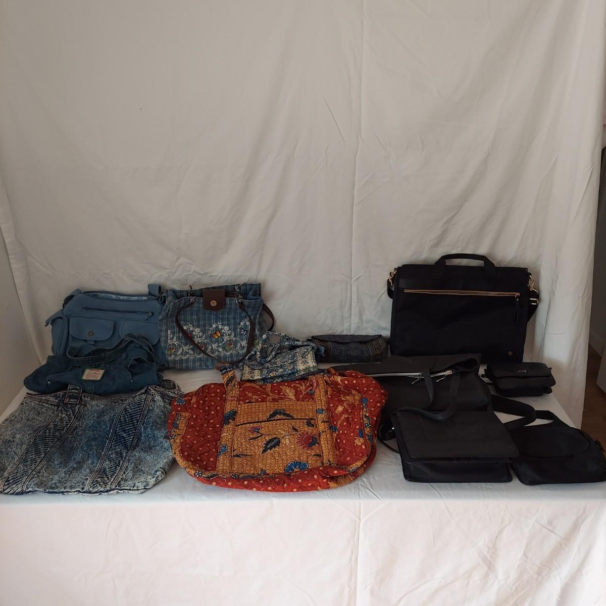 Lot includes 10+ purses and travel bags. The large quilted bag measures 17” x 5.5” x 14"H. The small quilted bags measure approximately 9” x 3” x 5"H not including the straps. Please see photos for details. Shipping available.