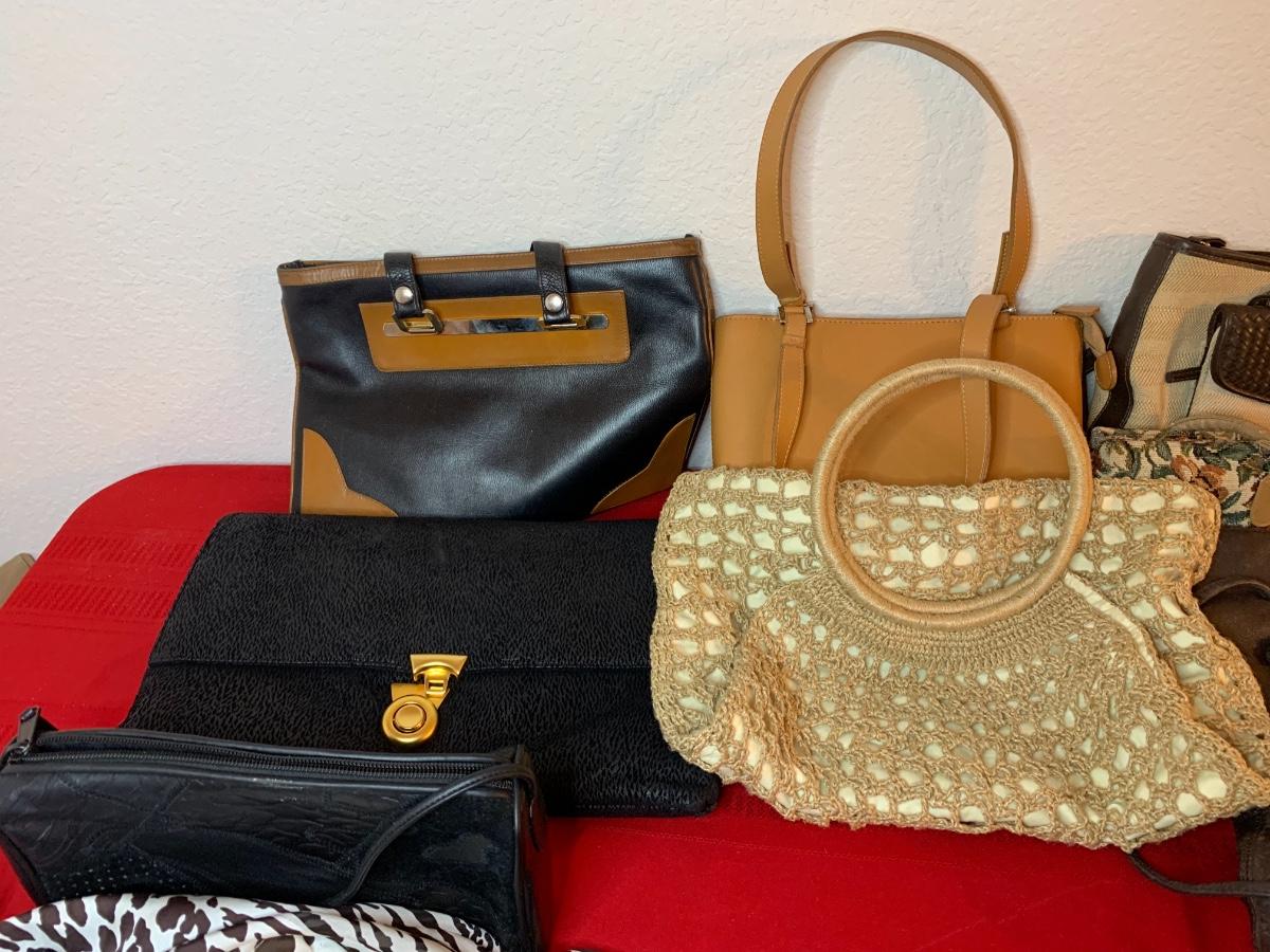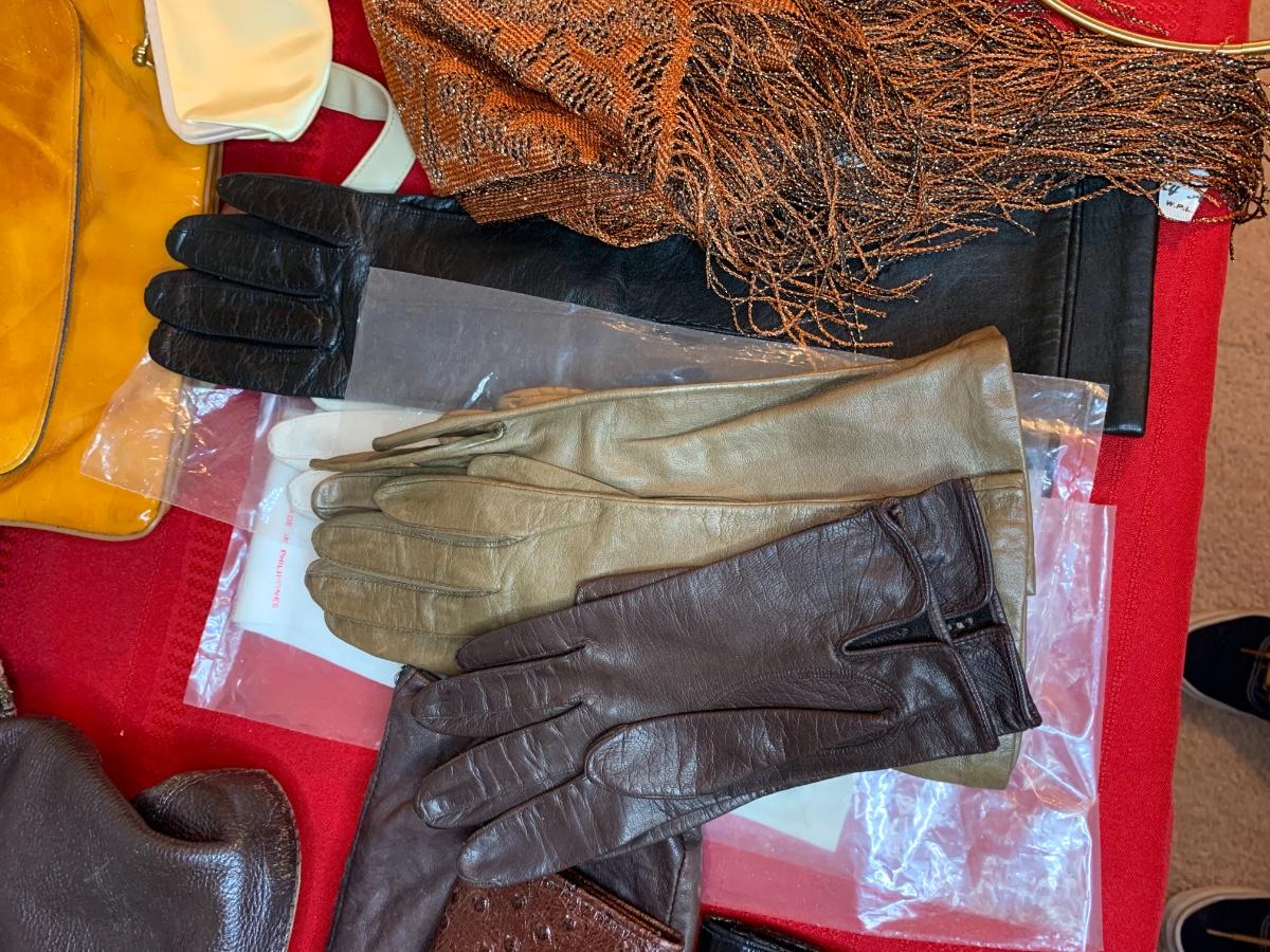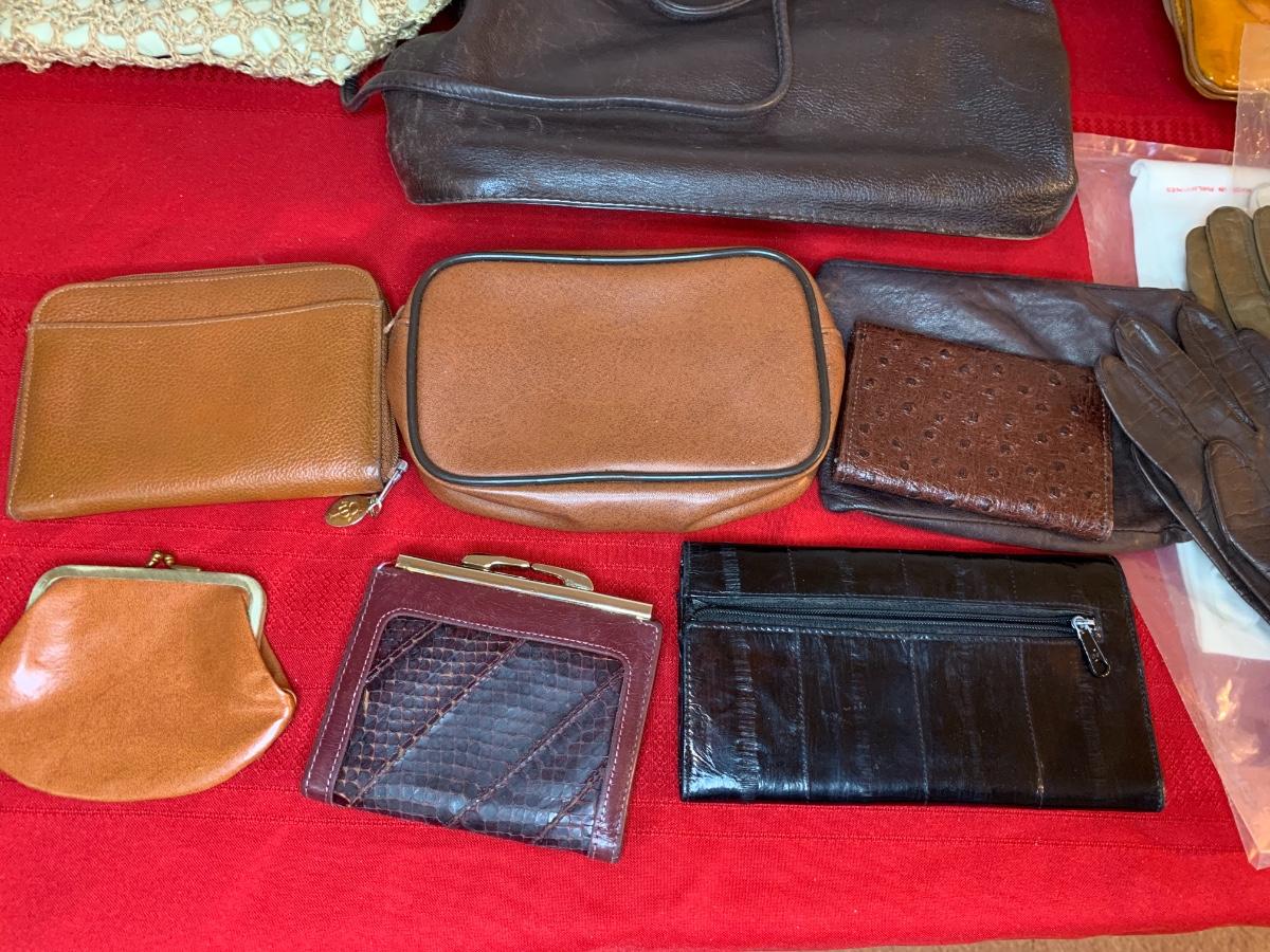 Lot includes purses, belts, umbrellas by Totes and Rain Kist, small pouches and gloves (made in Italy). St Thomas, Bosca, Kenneth Cole, S Roberts, Contessa etc