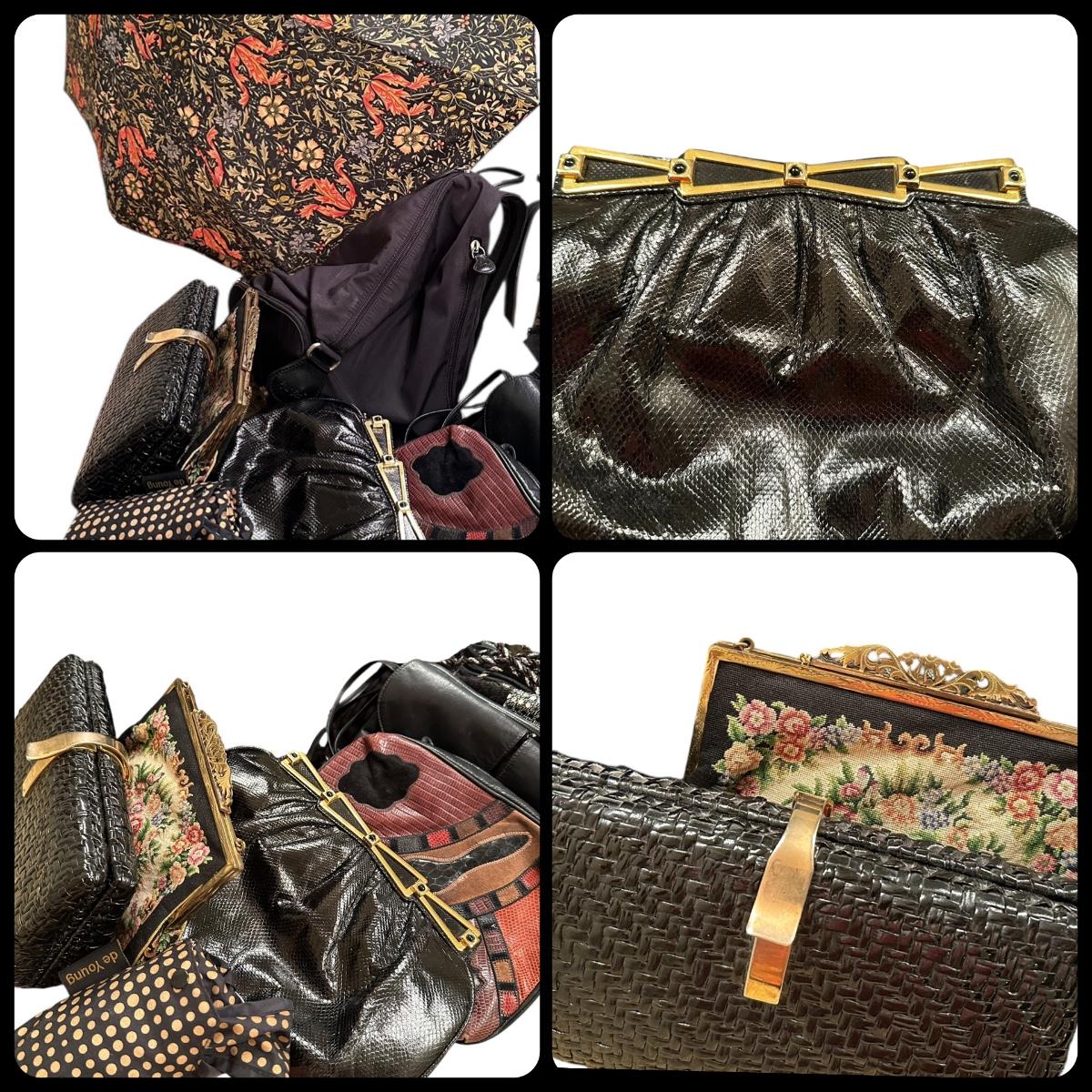 Purse Lot - Judith Leiber style, French Petite Pointe, Painted Wicker, & more w/ Umbrella