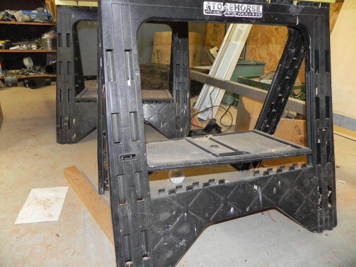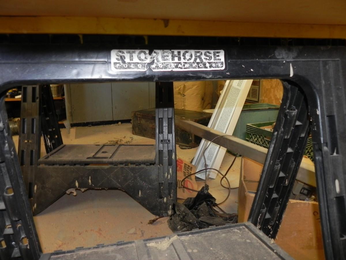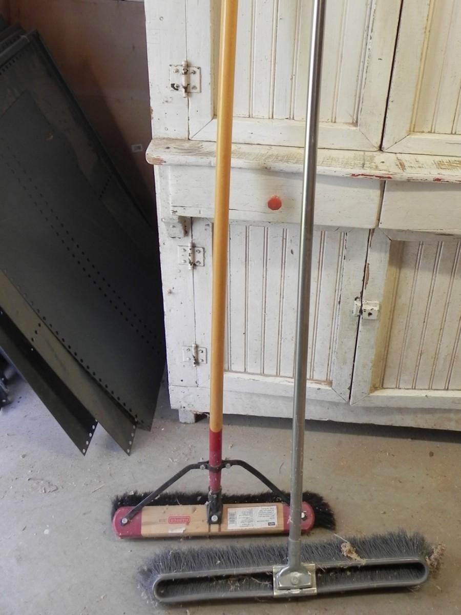 LOT 105 PUSH BROOMS-SAW HORSES