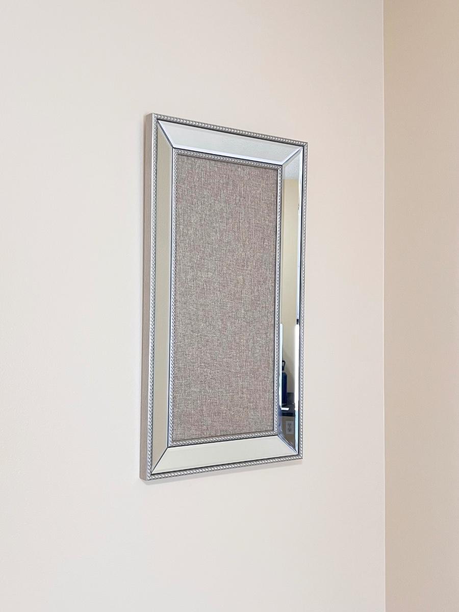 Silver beaded frame is a resin type material ~ Can be hung vertically or horizontally ~ 30” x 16”