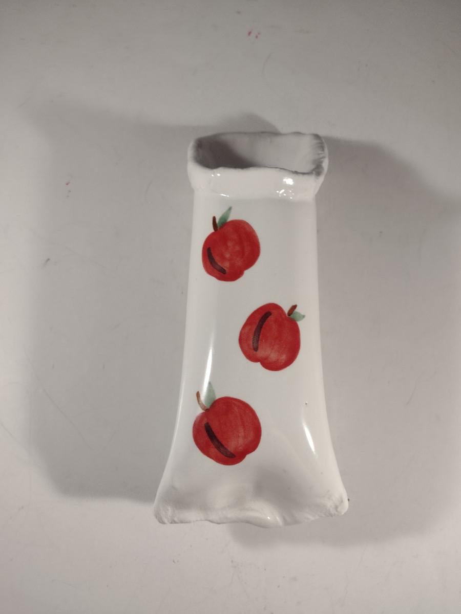 Pushaw Pond Pottery Wall Pocket with Apple Design- Approx 8" x 3"