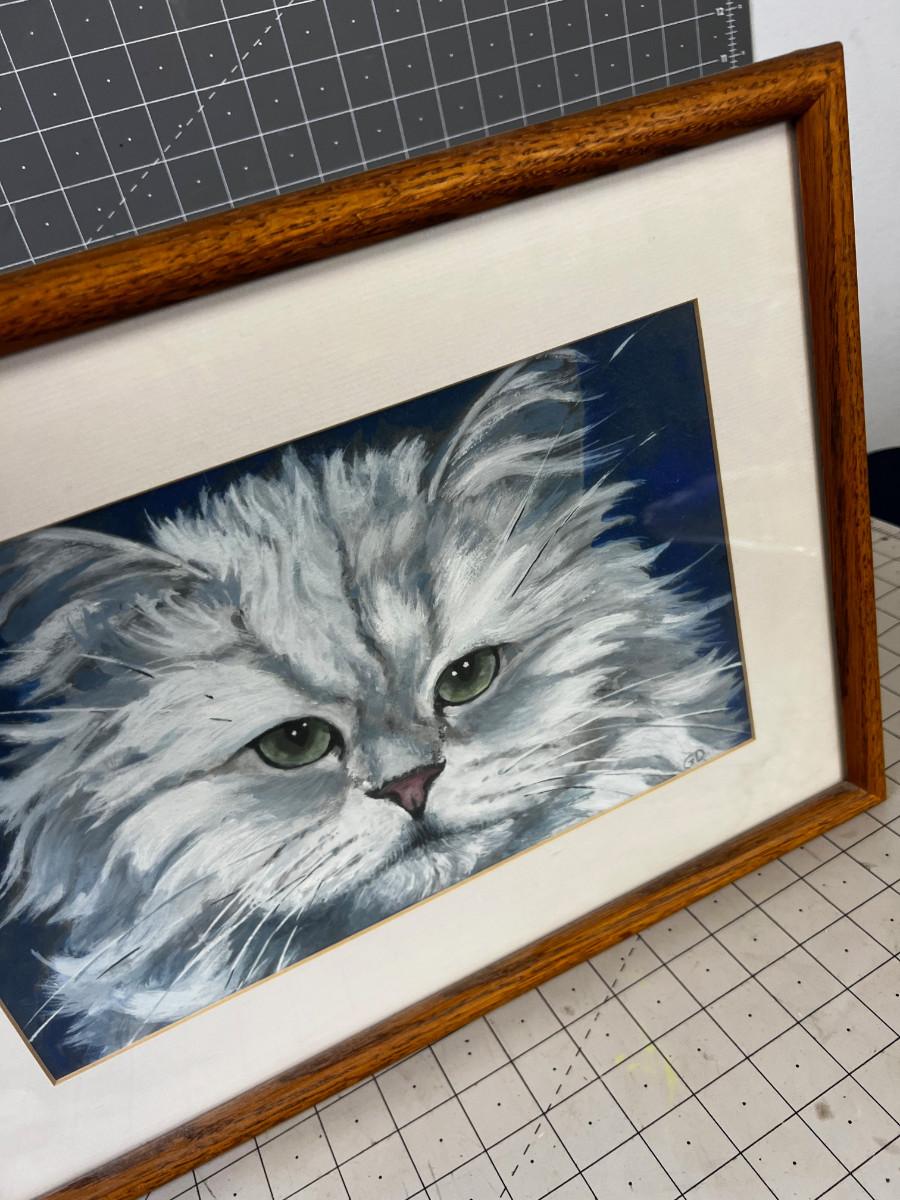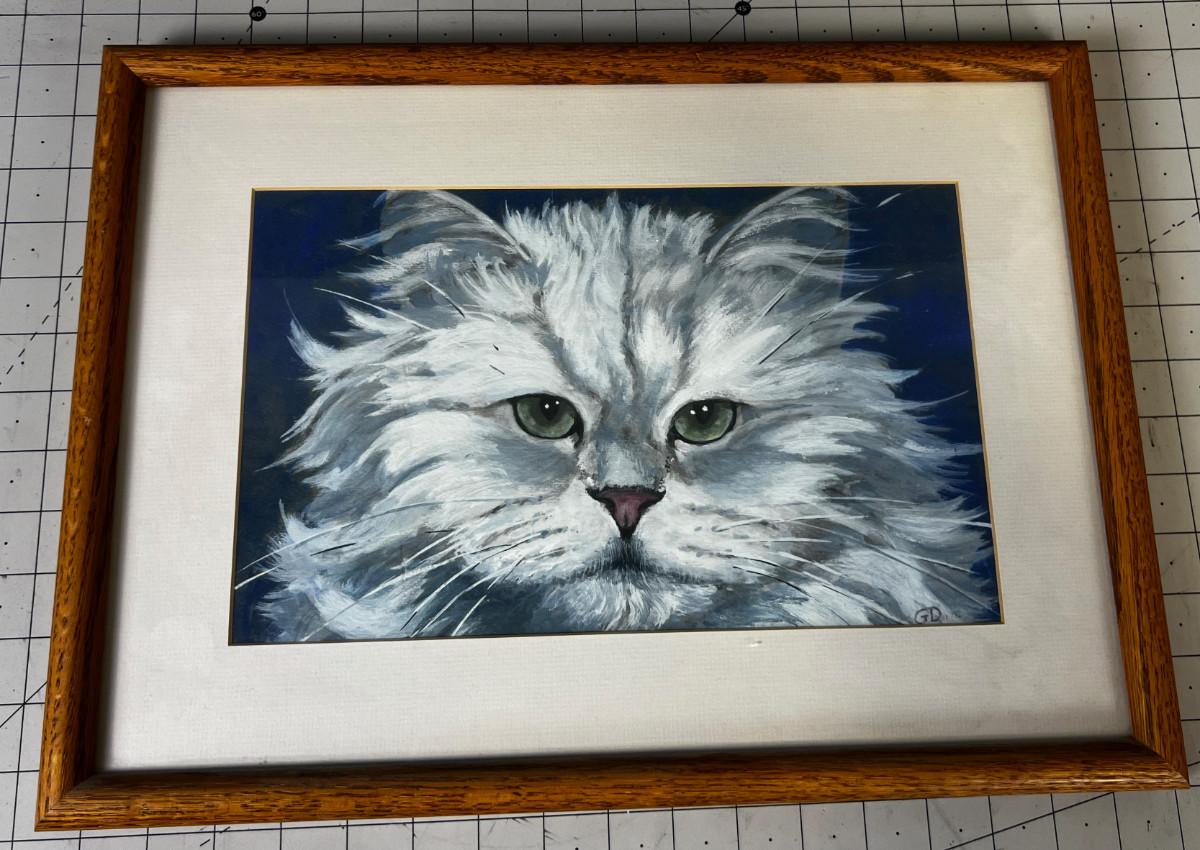 Pussy Cat Picture WHITE CAT in Pastel or Water Color?