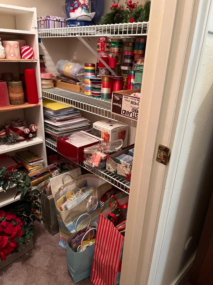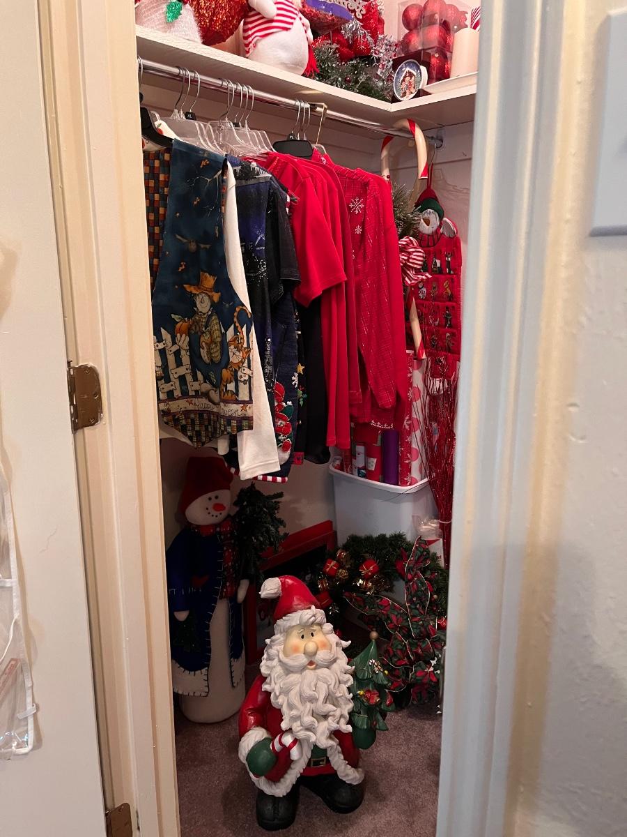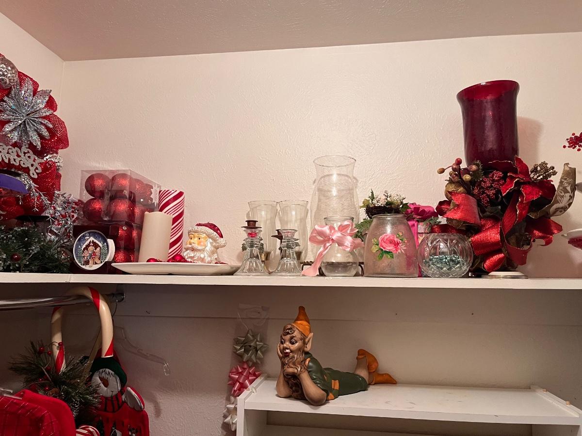 Mid century Modern furniture with lots of antiques and crystal pieces and Christmas Galore