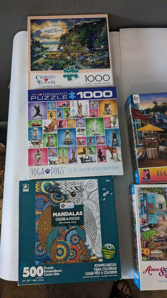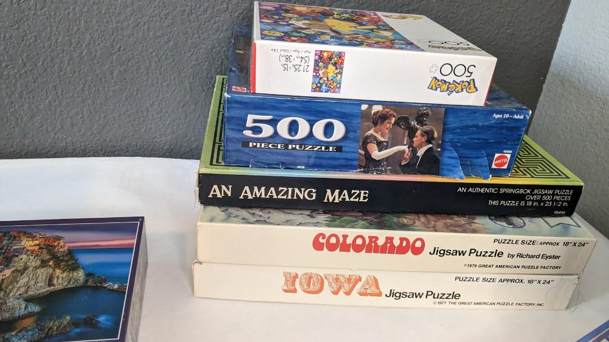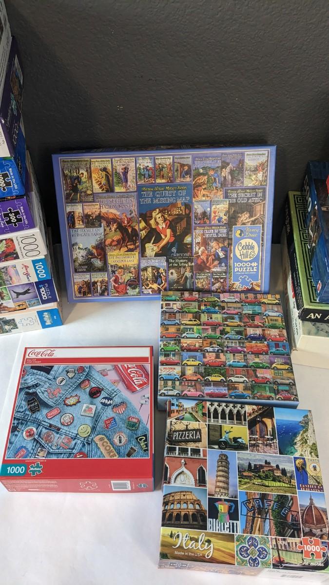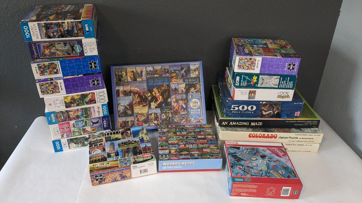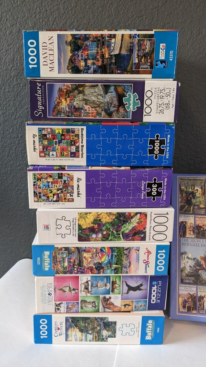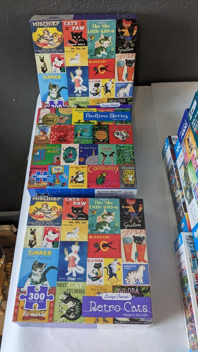 a lovely assortment of vintage and contemporary puzzles. Varied sizes and piece count. A great little lot for any level. Note there is a duplicate of the retro cats.