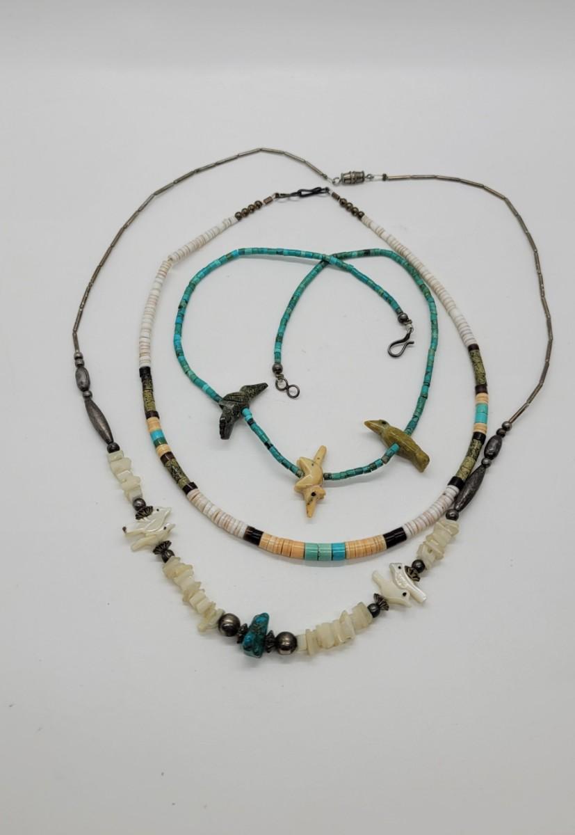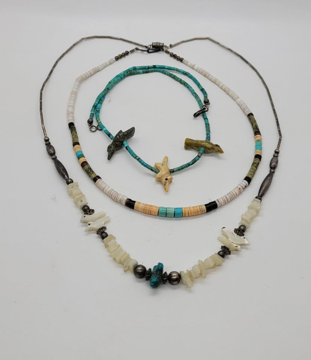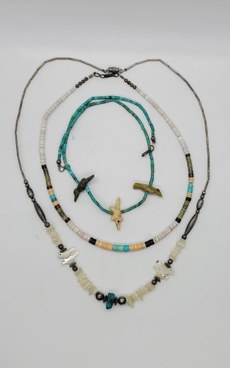 PV 7 : Handcrafted beaded choker and two Handcrafted Native American Fetish necklaces