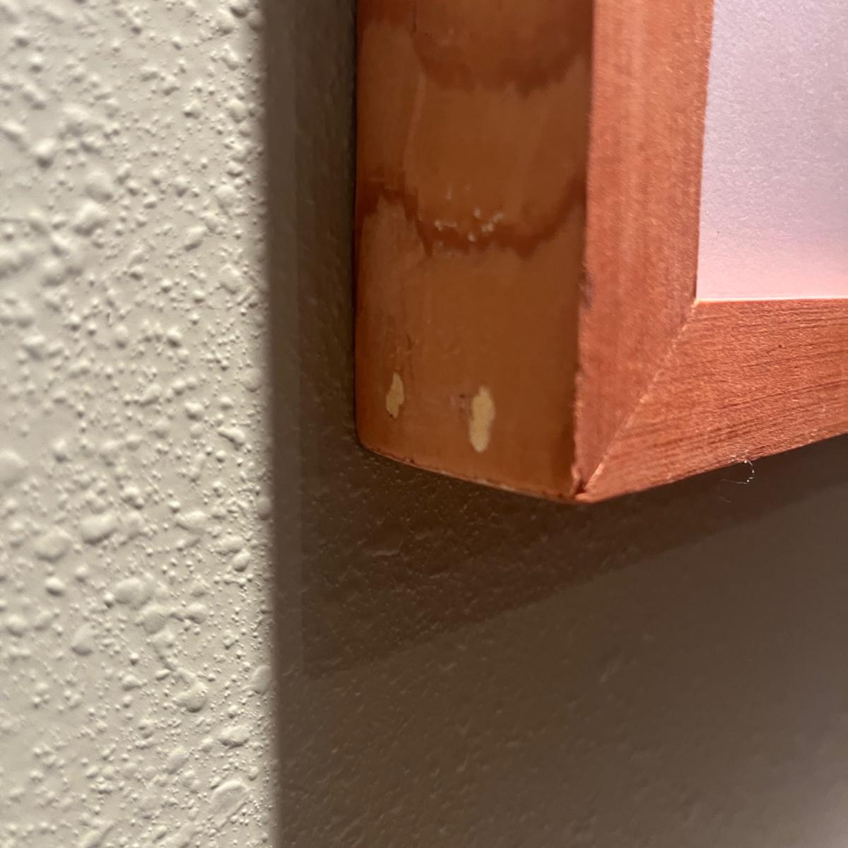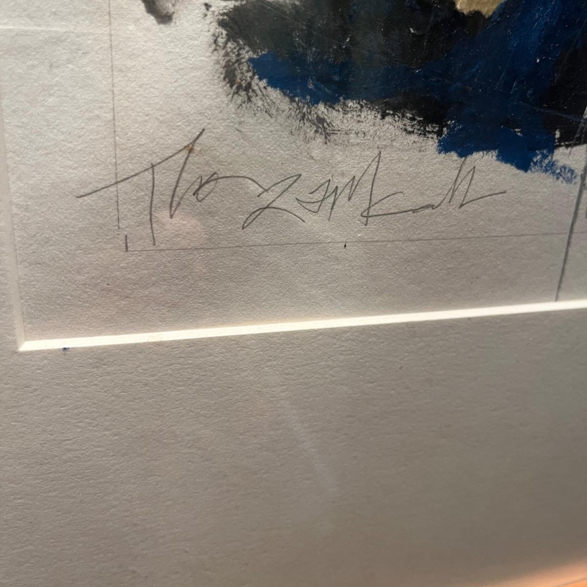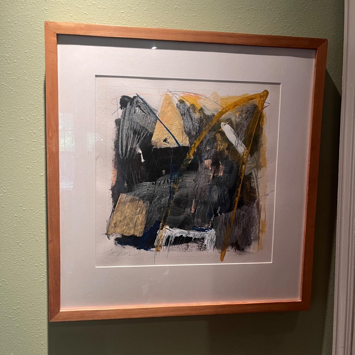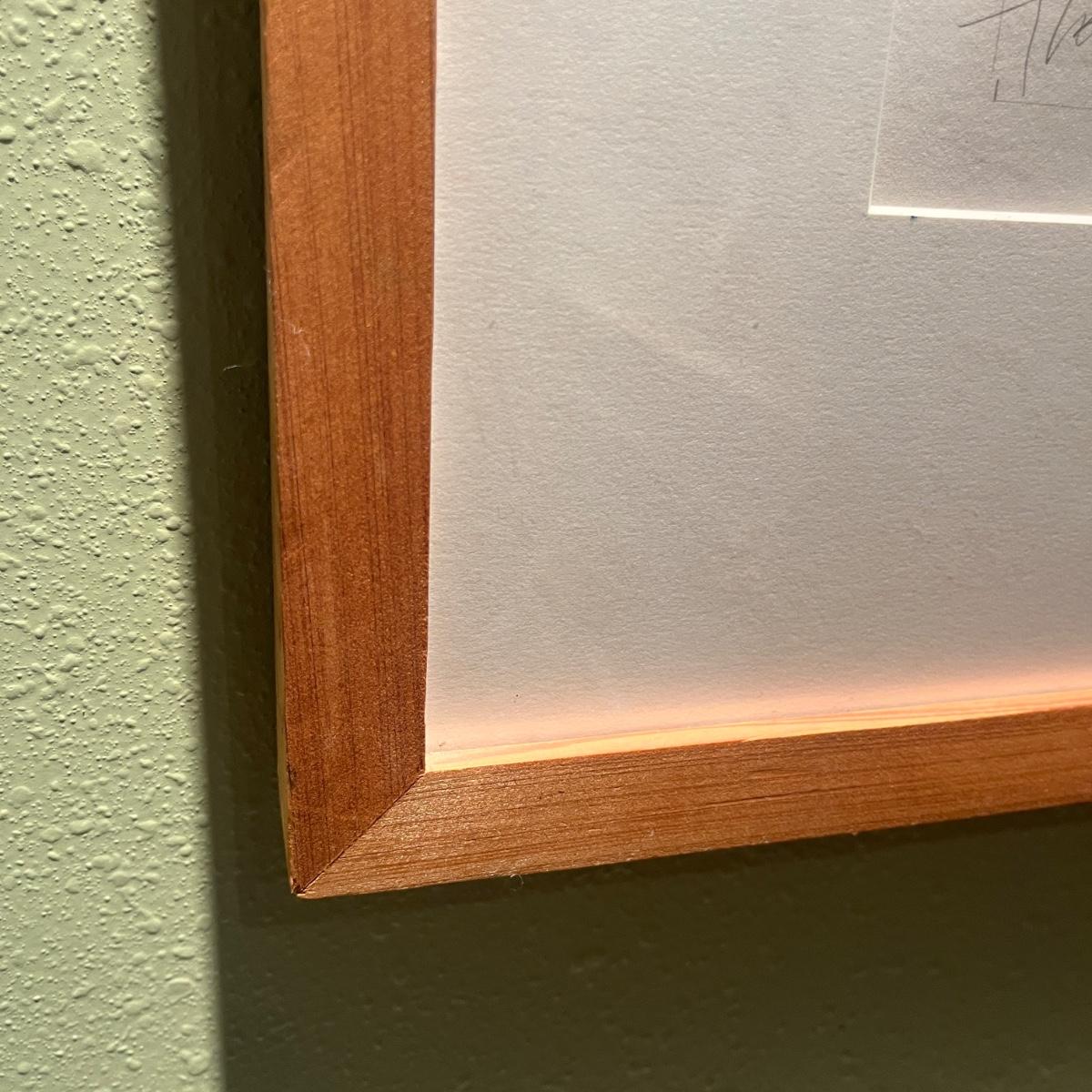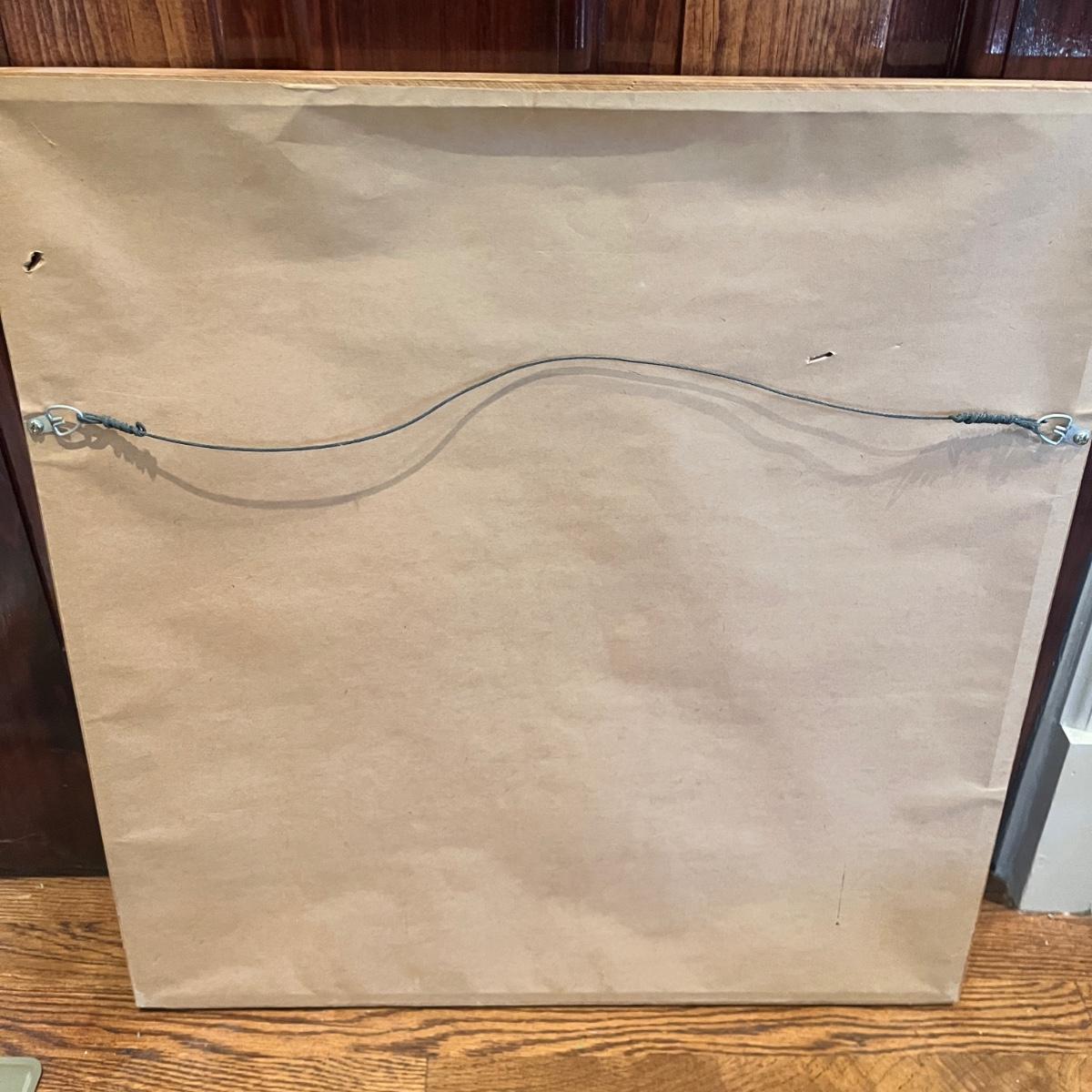 This wooden framed art is pencil signed and appears to be original artwork. The signature and title are difficult to discern. Frame measures 23” x 24”H. Piece is under glass. Please see photos for details.