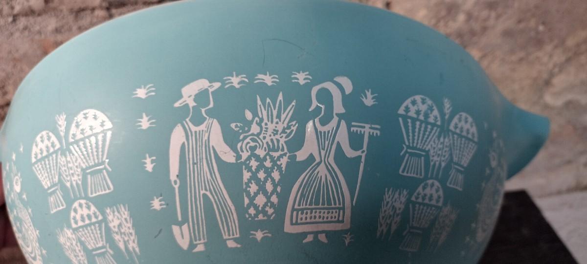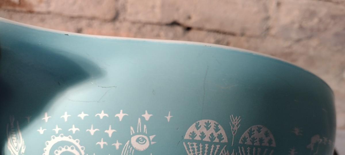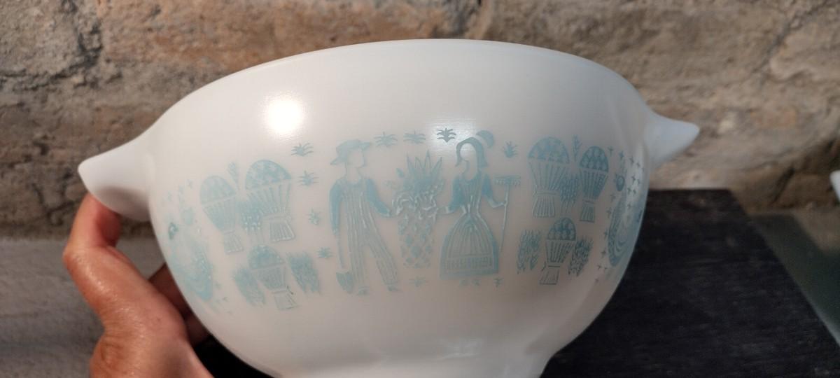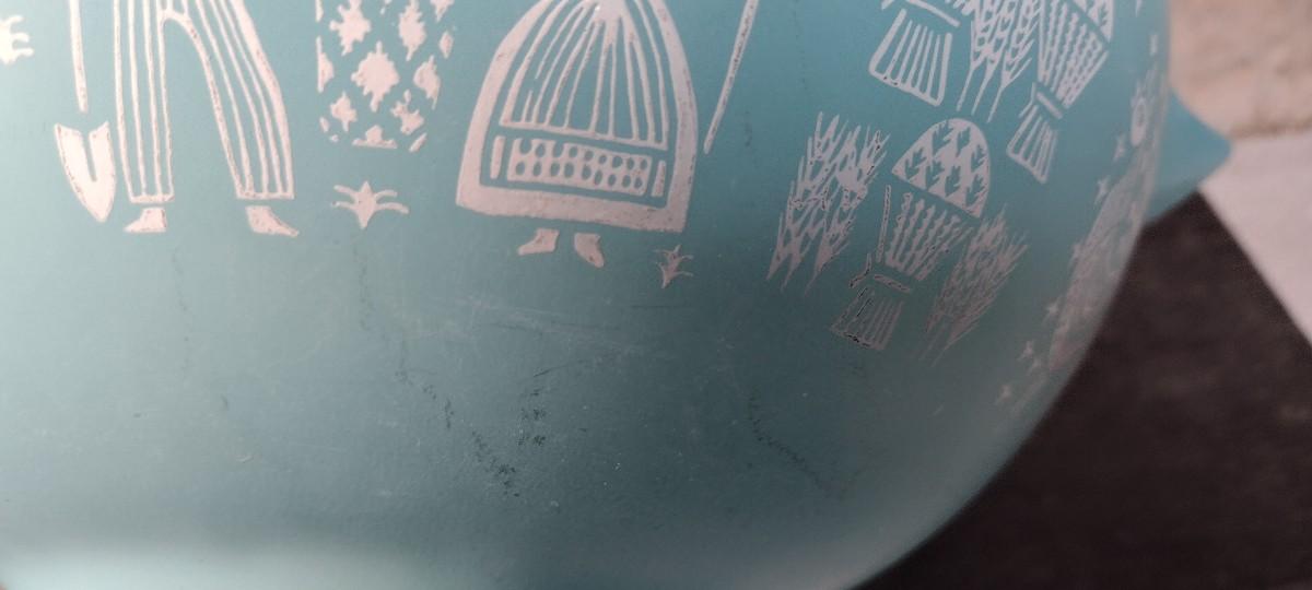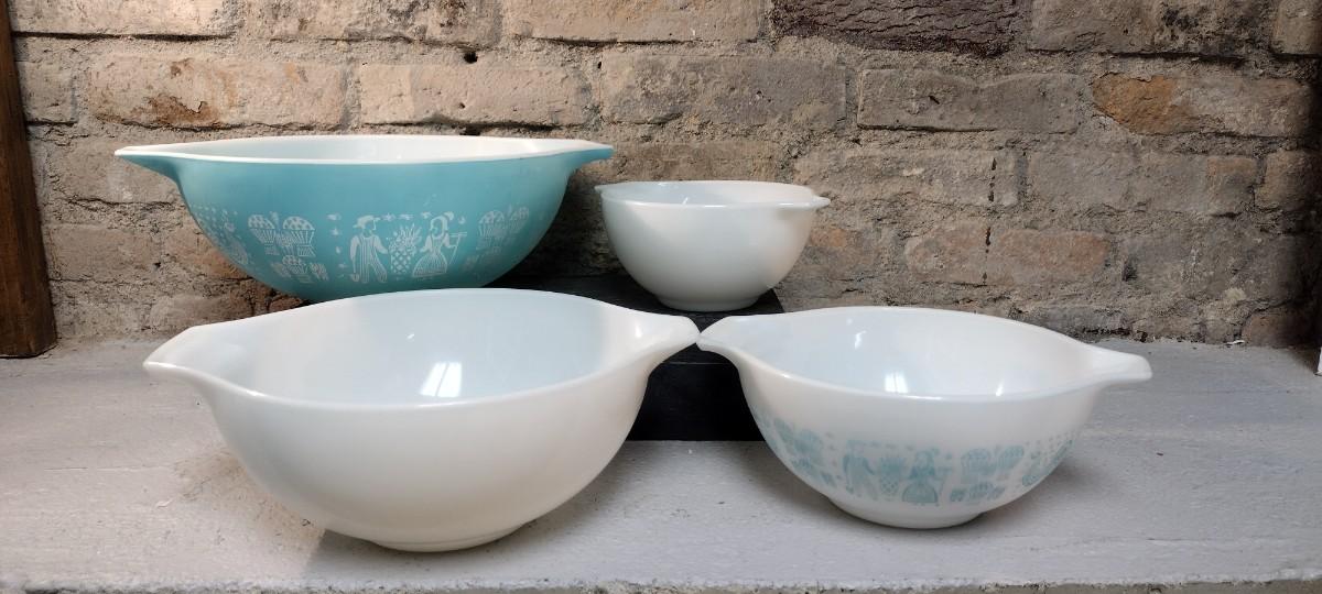 Set of 4 Cinderella Bowls - Pyrex. Terrible dishwasher damage but very usable