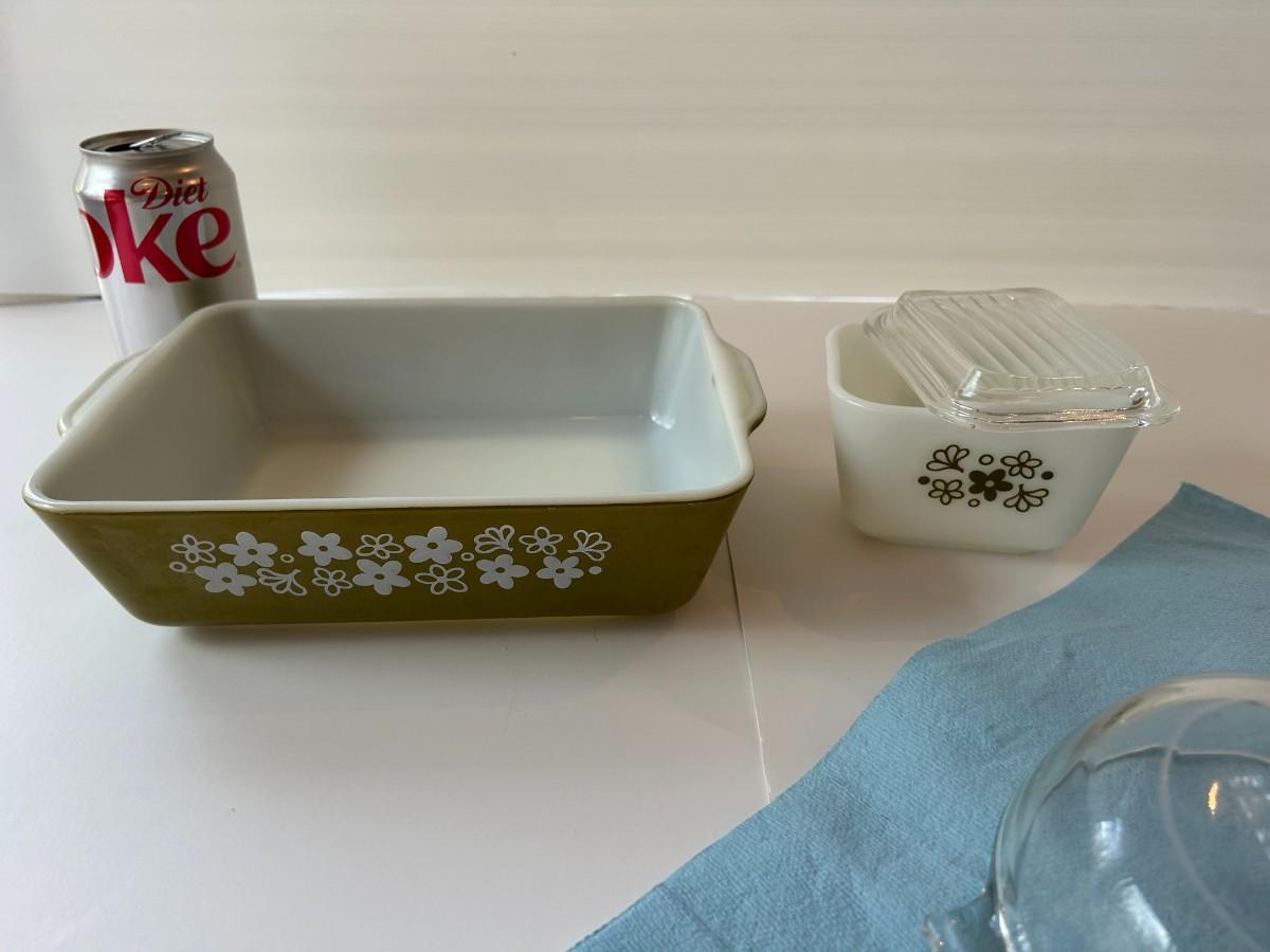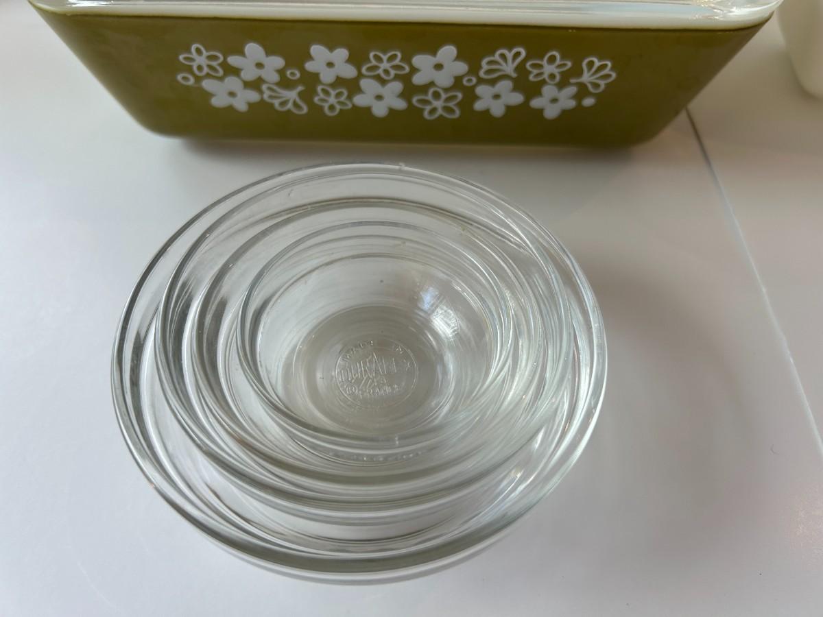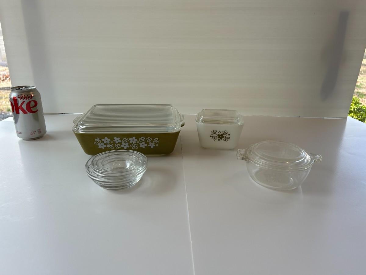 Vintage Pyrex bakeware and nesting bowls, great condition.