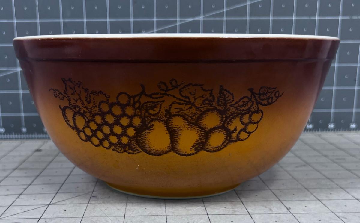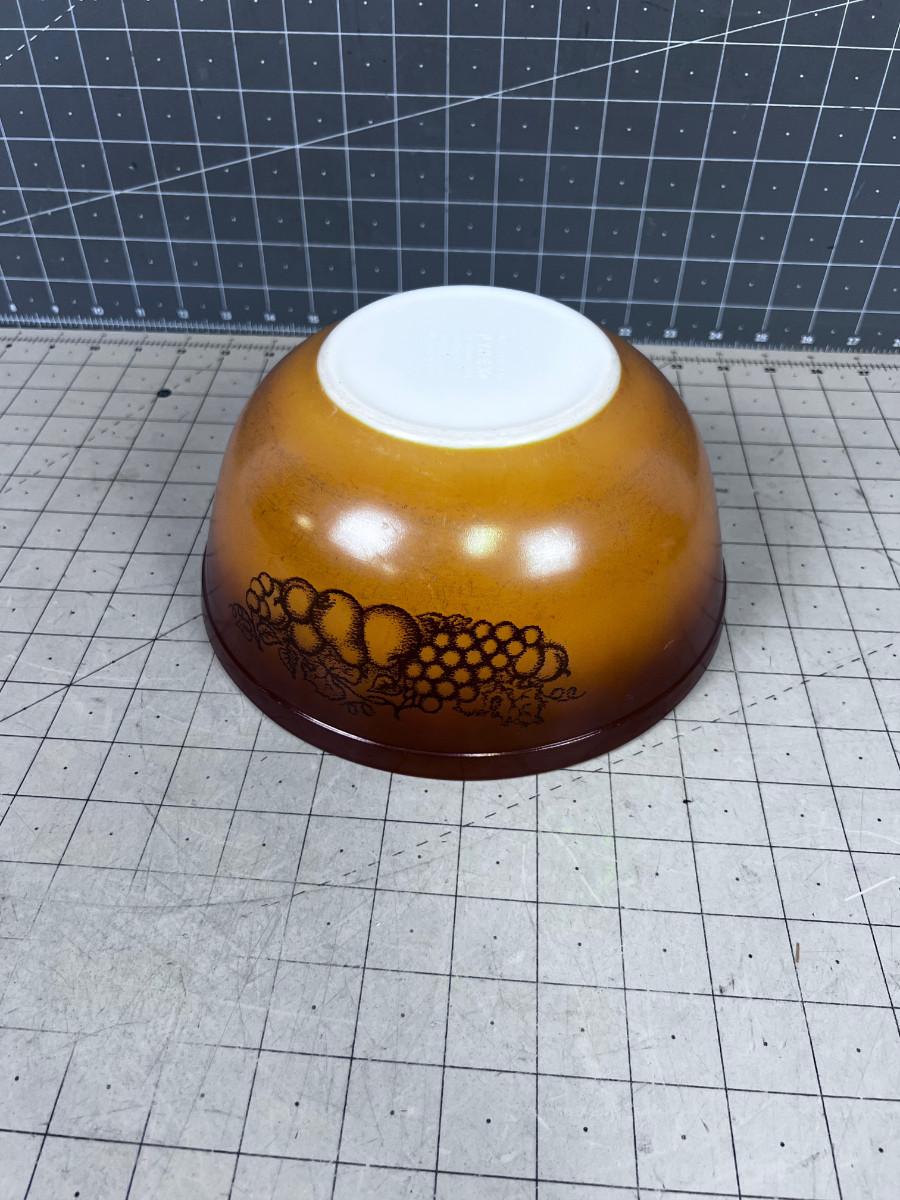 Pyrex 2-1/2quart Mixing Bowl Old Orchard Fruit Pattern - Brown Color