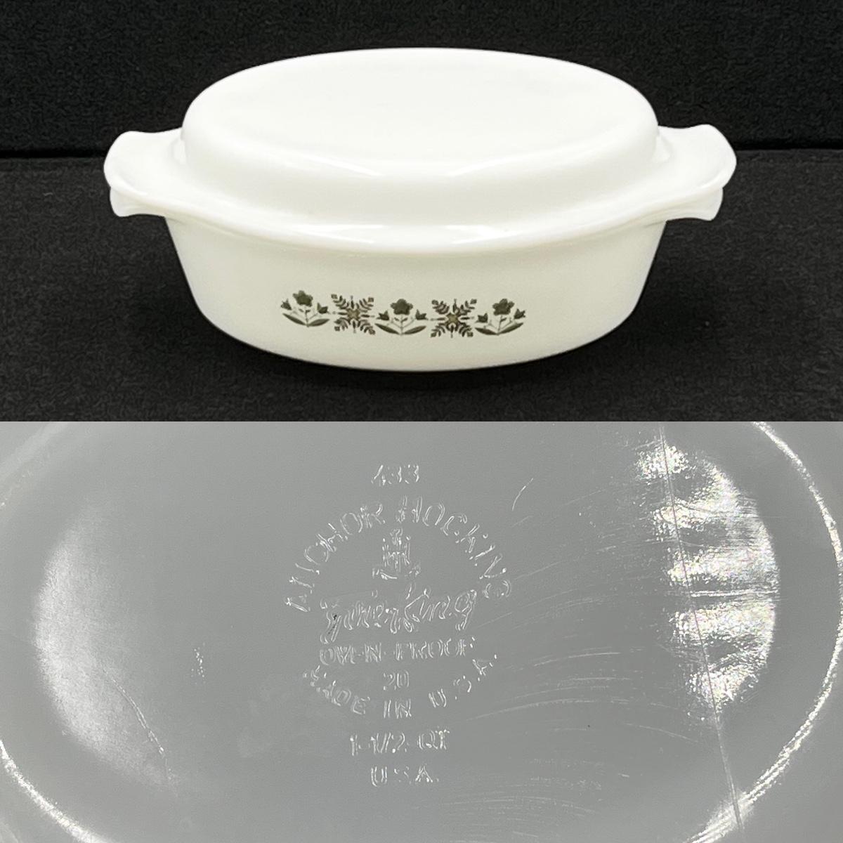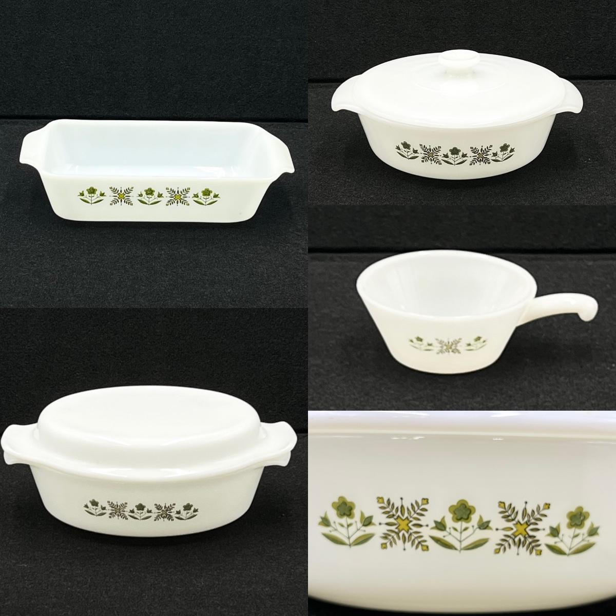 ANCHOR HOCKING ~ Four (4) Assorted ~ Green Meadow ~ Fire King Ovenware