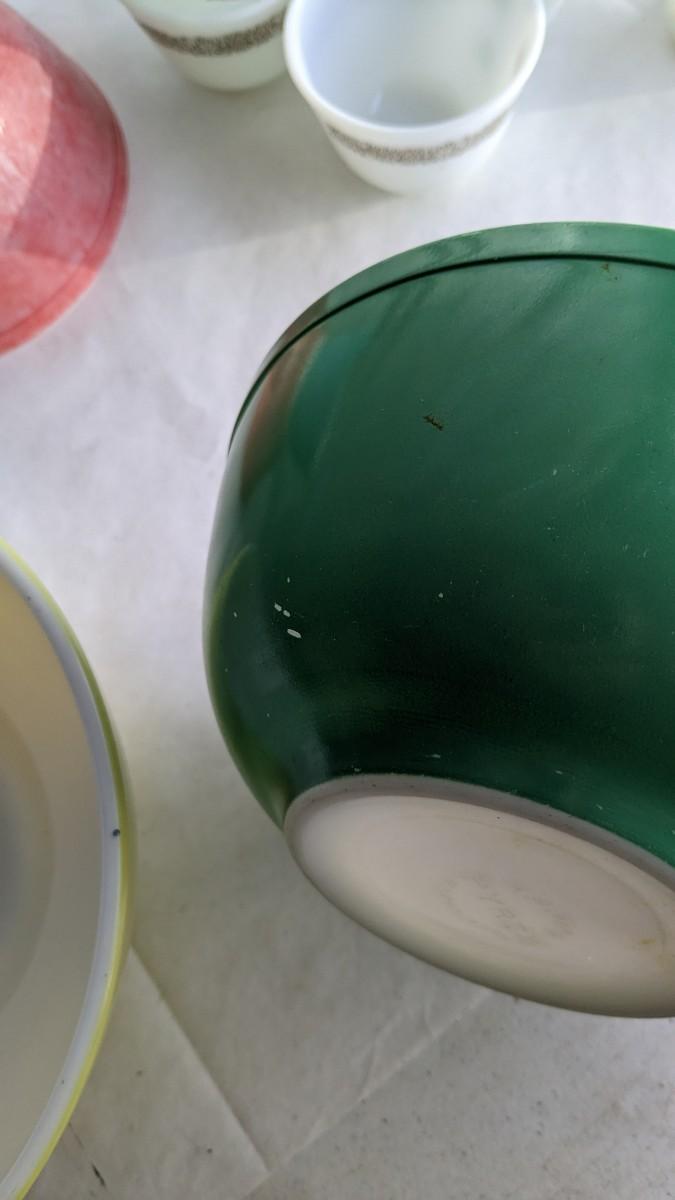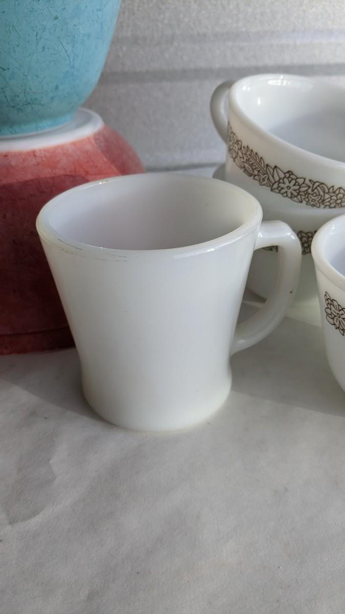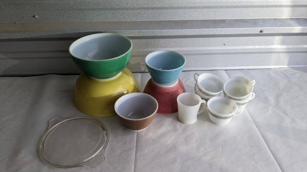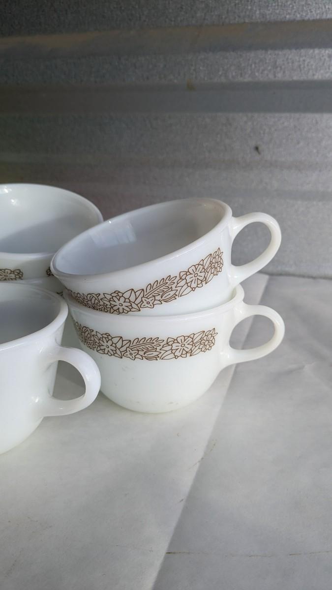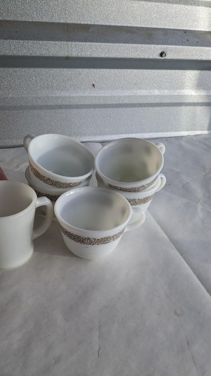 includes primary set with damage noted, see in photos. A large cinderella casserole lid, woodland mugs, and a fire king mug. No shipping. 2616