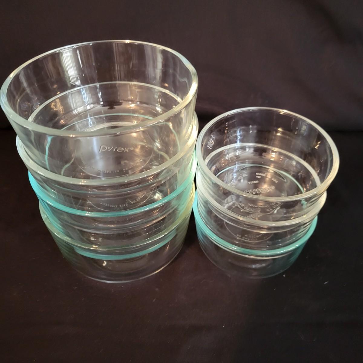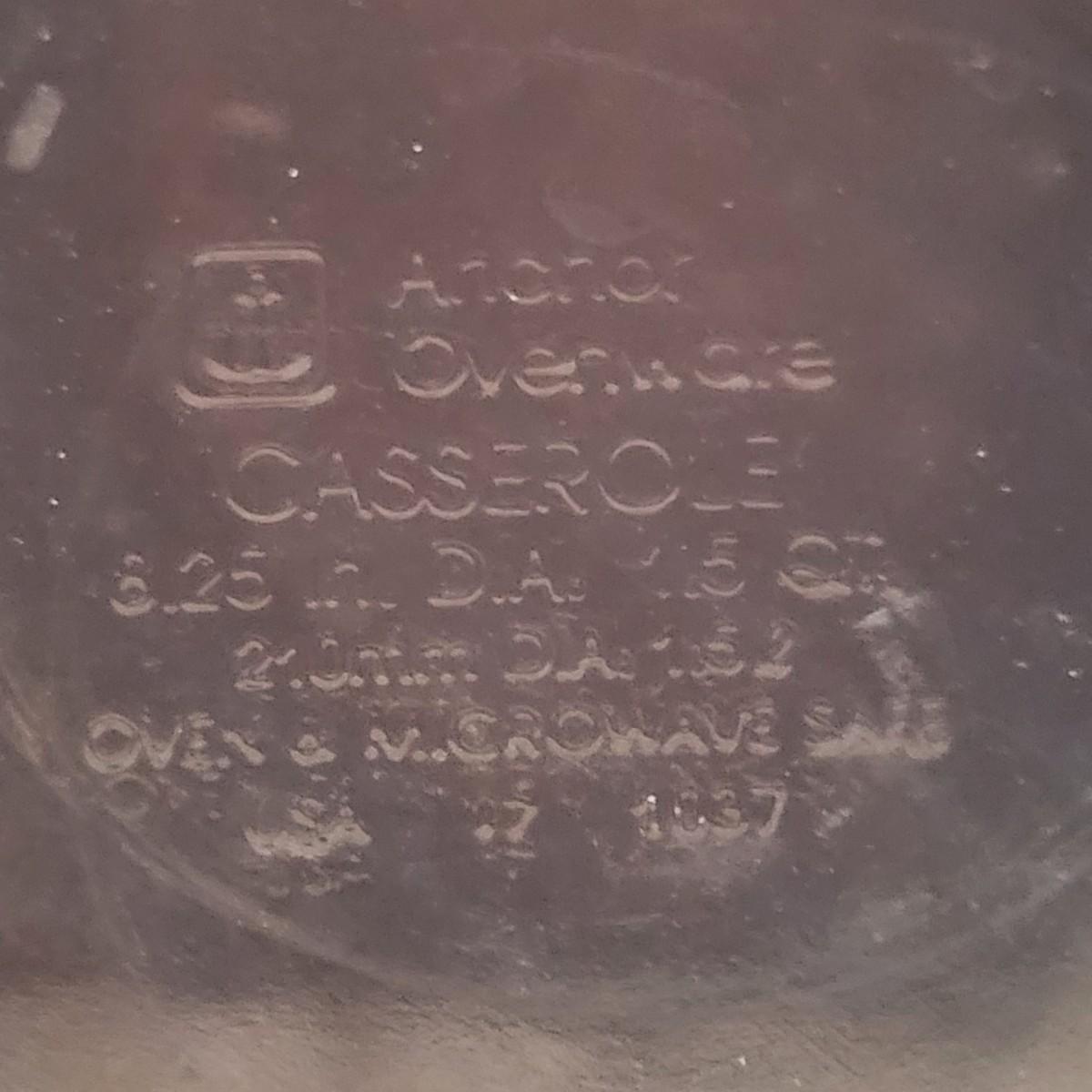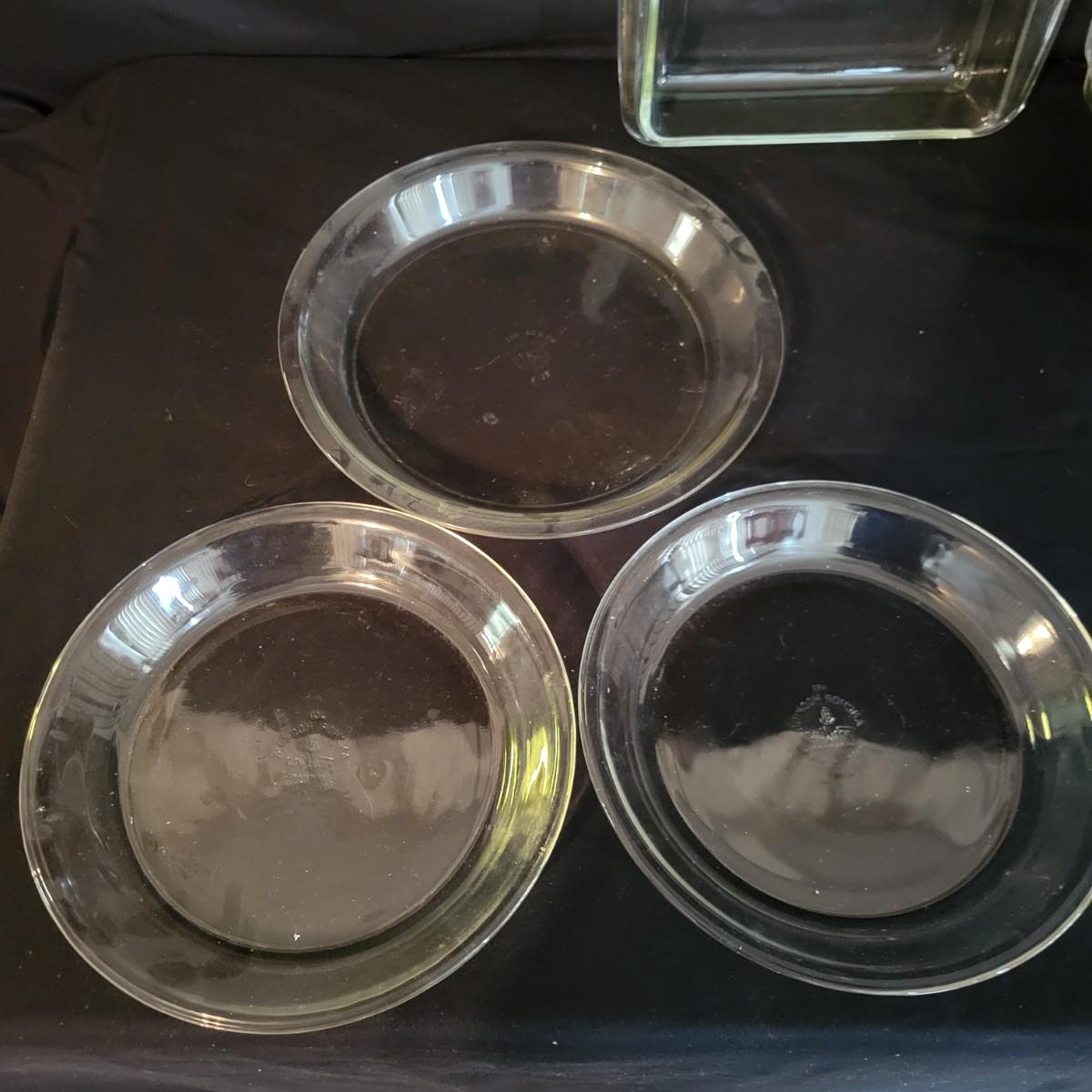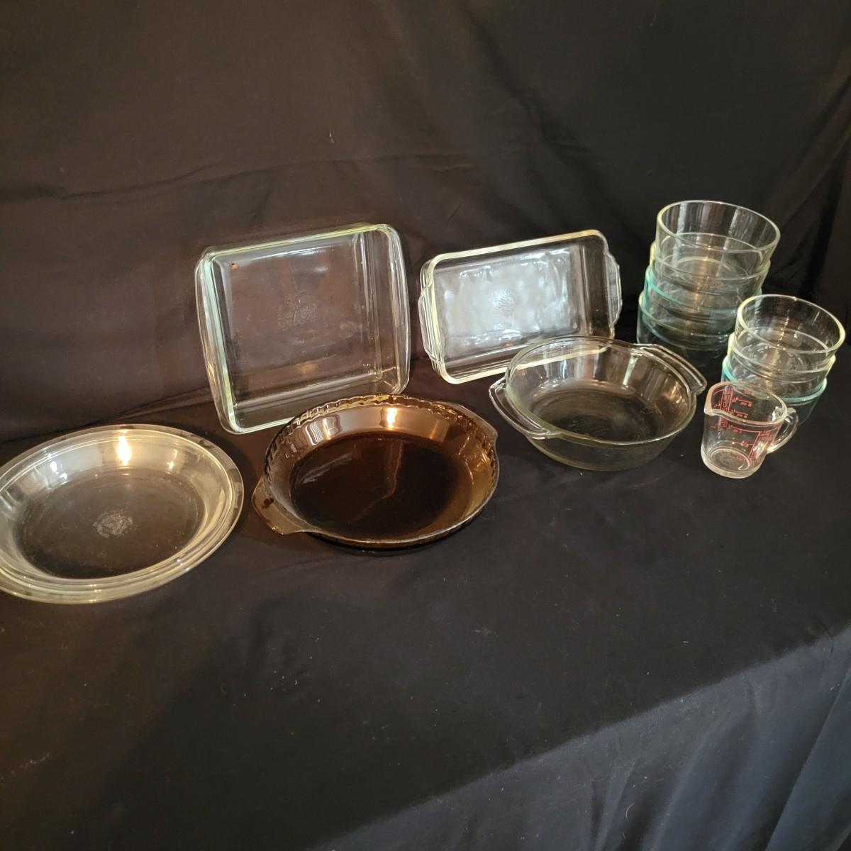 An assortment of Pyrex, Anchor Hocking and FireKing baking and casserole dishes. The larger, brown Anchor Hocking dish is approximately 10"D. Please see photos for inventory. Local pickup only