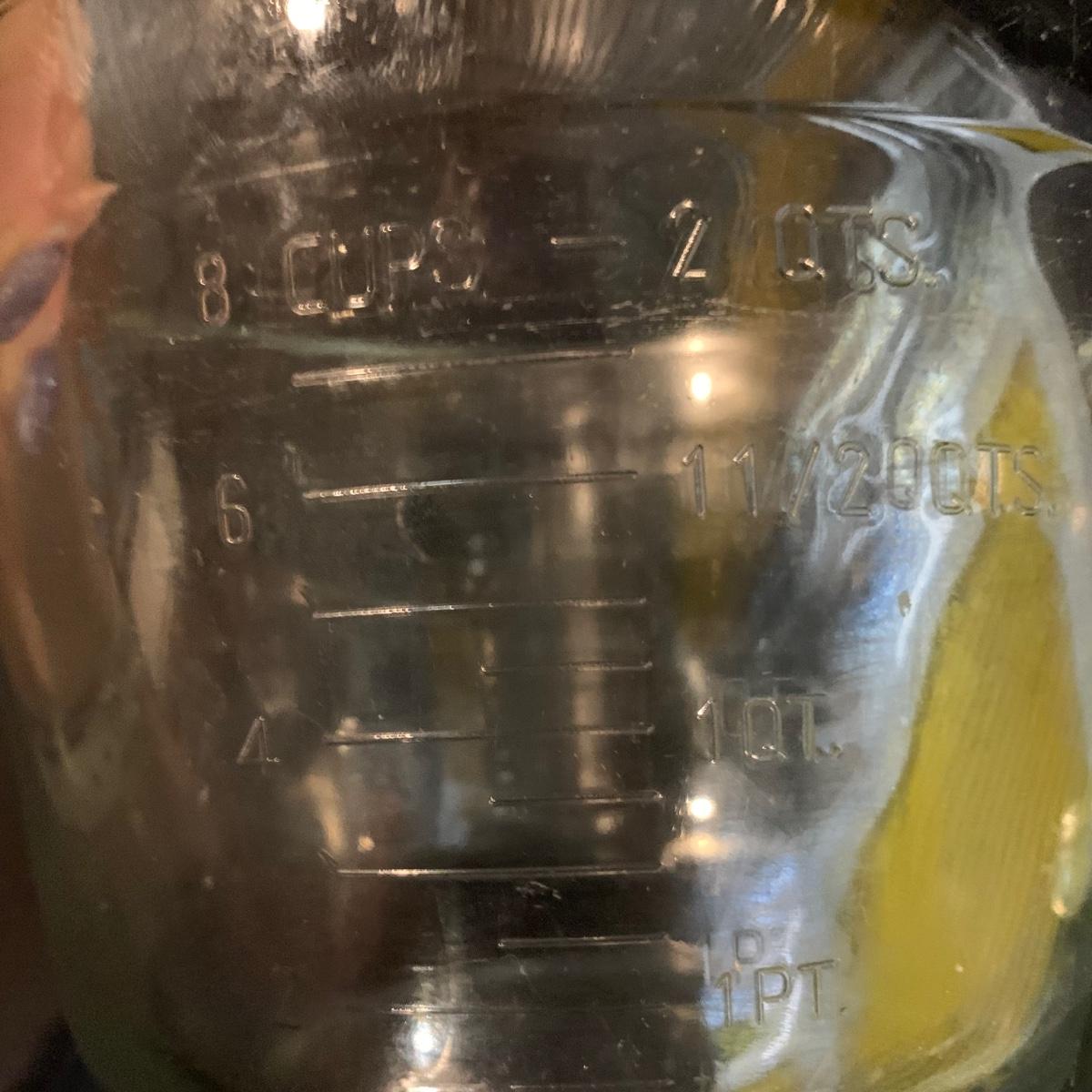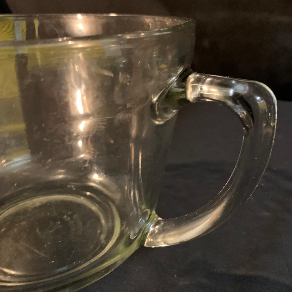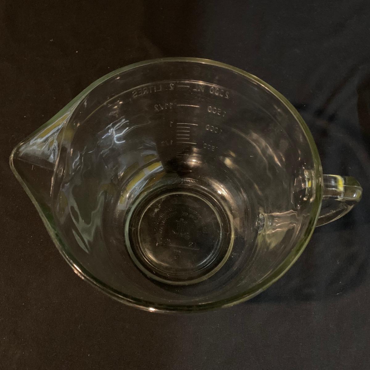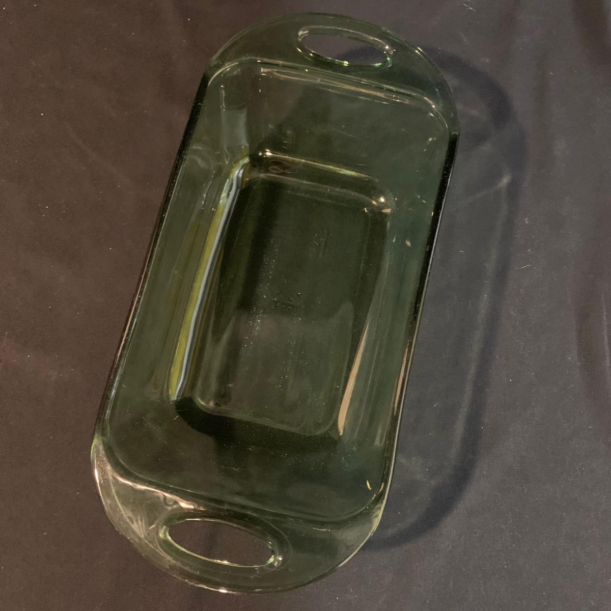 Six glass items of Pyrex and Anchor Hocking bakeware. The two-quart measuring cup and green-hued 5” x 9” baking dish are Anchor Hocking. The two mixing bowls (six cup & ten cup), round lidded two-quart dish, and rectangular three-quart baking dish are Pyrex. Most items are in good condition, with some small superficial scratches. The three-quart Pyrex is a bit more scratched than the other items and has a little bit of chipping on its inner rim by the handle. Local pickup only.