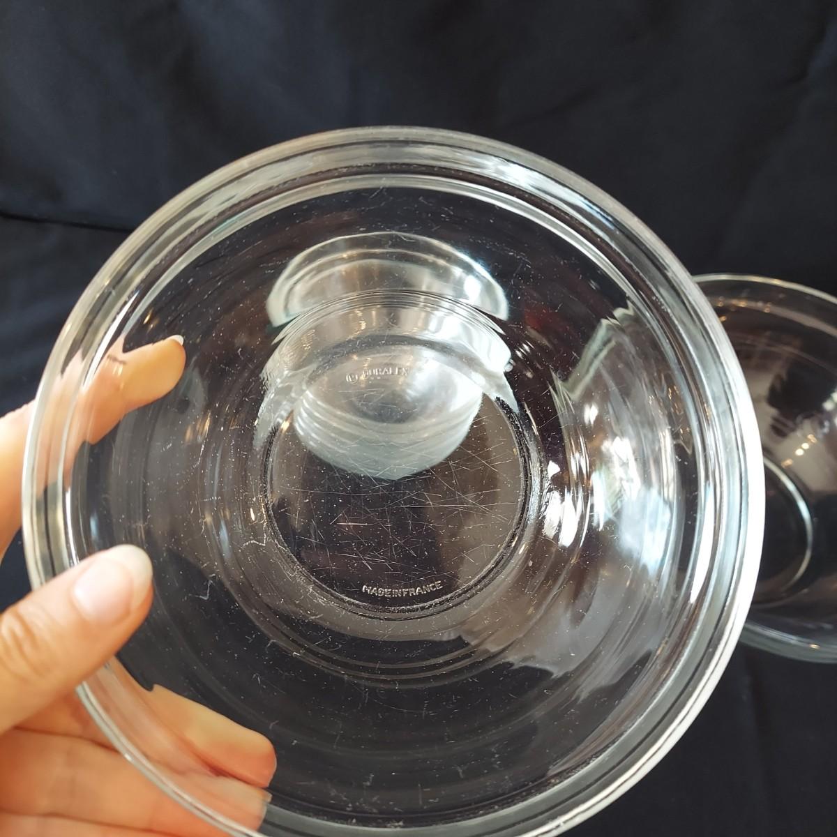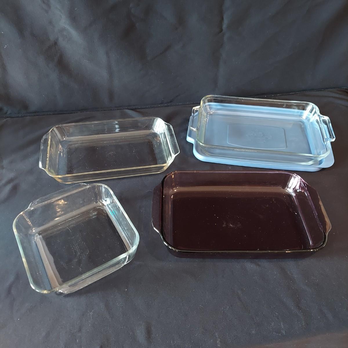 Several pieces of glass bakeware and mixing bowls by Pyrex, Anchor Hocking, Duralex and more. The large mixing bowl measures 5"H with a 12"D. Shipping available