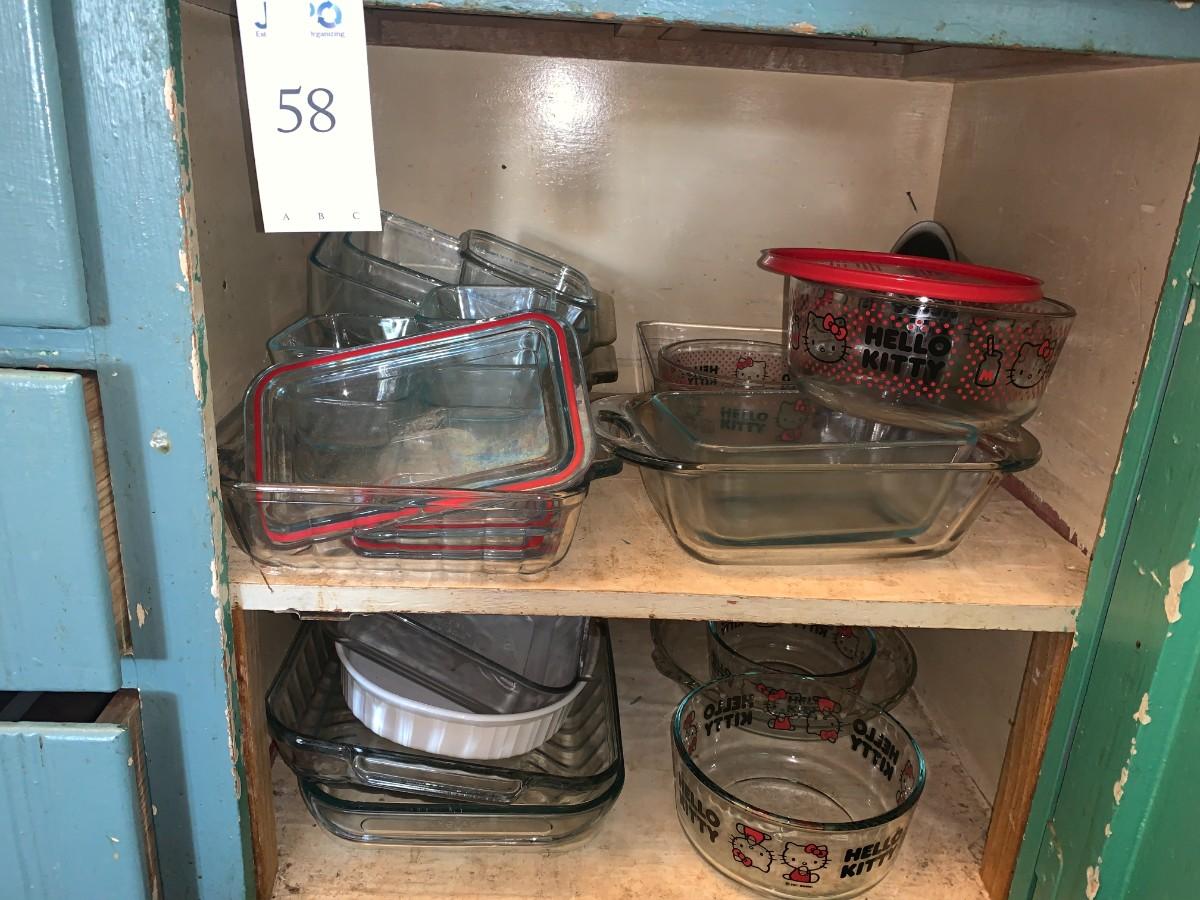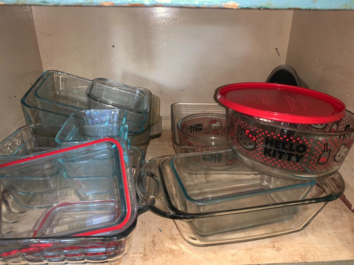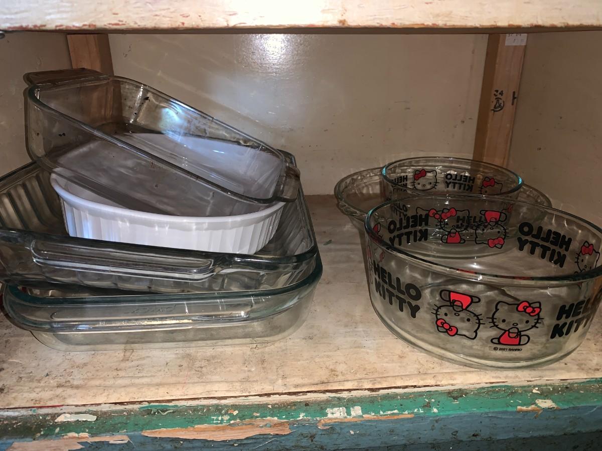 Selection of Pyrex Bakeware, including a Hello Kitty Bowls and Lid.