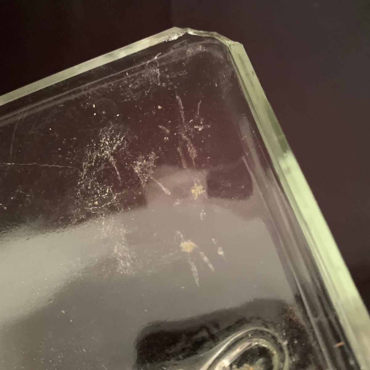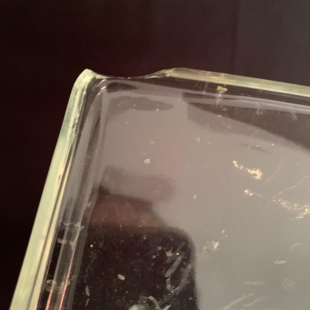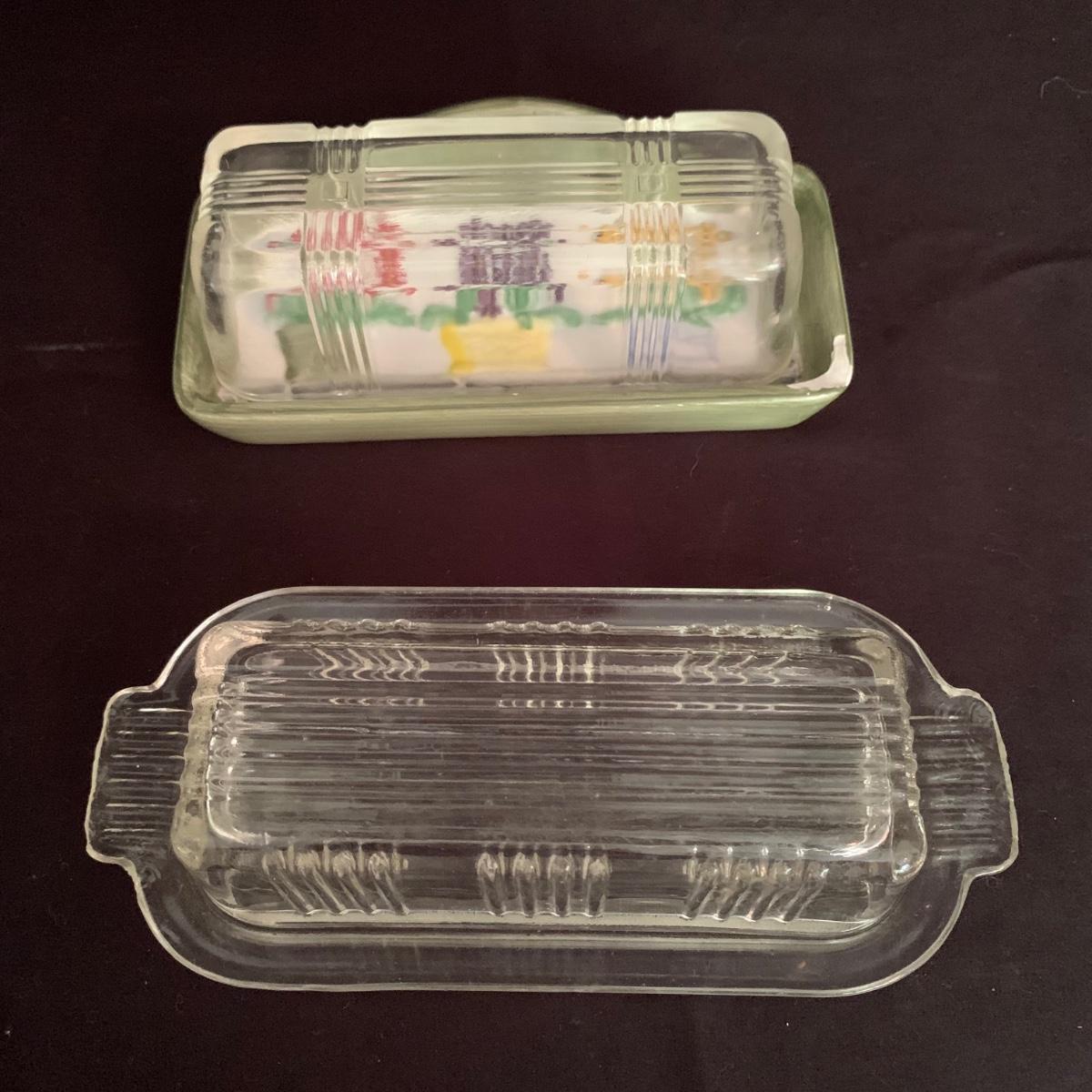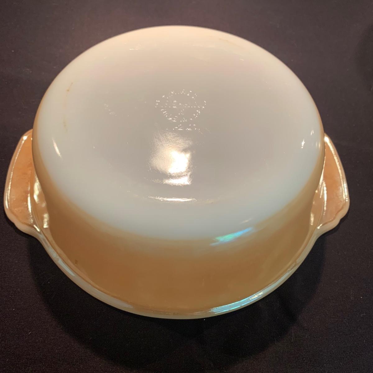 Thirteen total dishes in this lot. Three rectangular casserole dishes, one of which is a 1.5 quart Pyrex, one is a two-quart Anchor Ovenware, and the third is not marked. Five round dishes: one peach-colored Fire-King dish, one Arcuisine, two clear glass Fire-Kings, and one lidded 1.5 quart Pyrex. Two glass Pyrex 10” pie dishes. One square lidded dish and two butter dishes. Items are in fair to good condition. Some have some scratches from use. The lid from the square dish and the butter dishes each have a chip or two. Local pickup only.