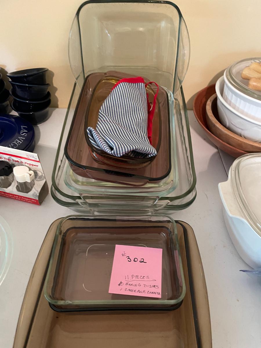 11 pieces of Pyrex glass bakeware