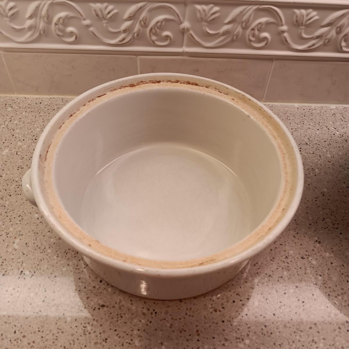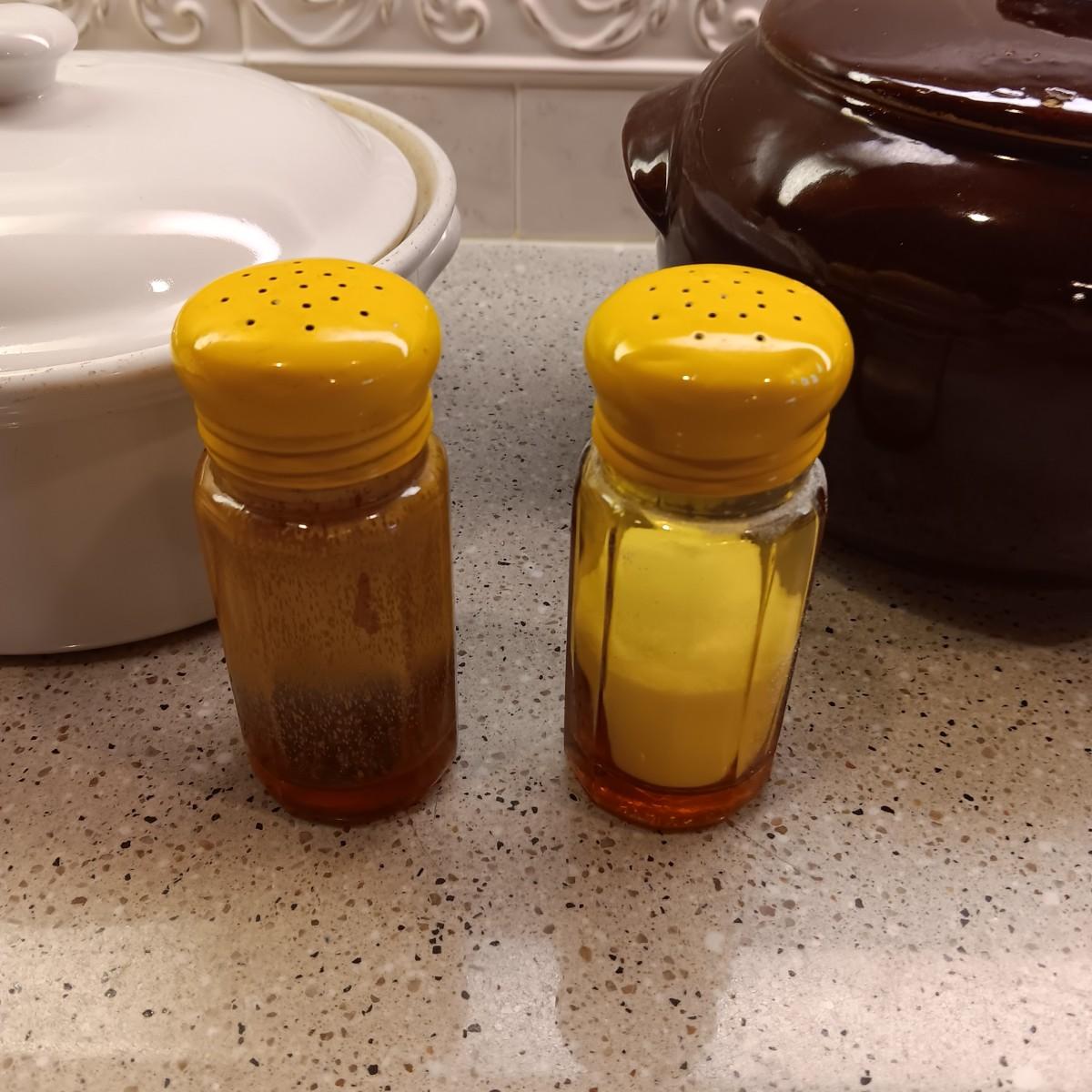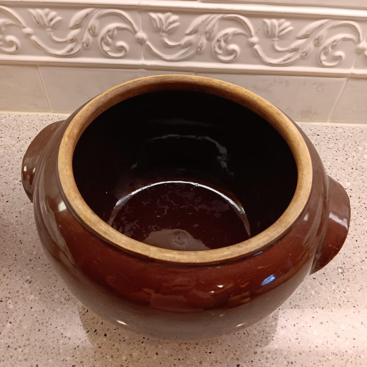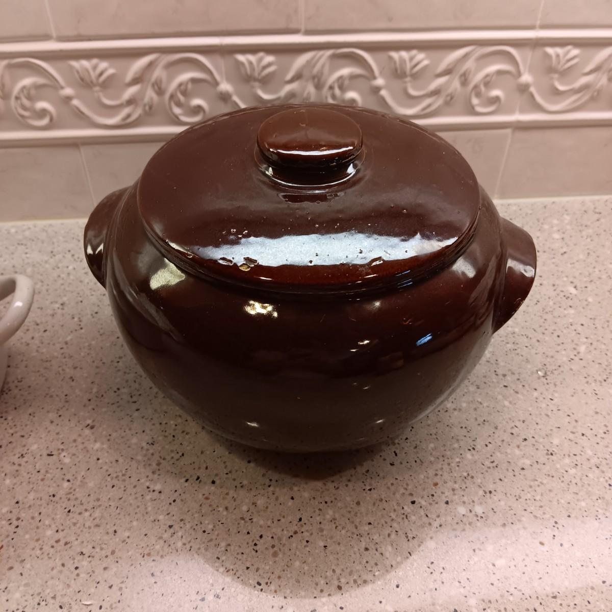PYREX BAKING DISH, BEAN POT, SALT/PEPPER SHAKERS AND A CASSEROLE DISH