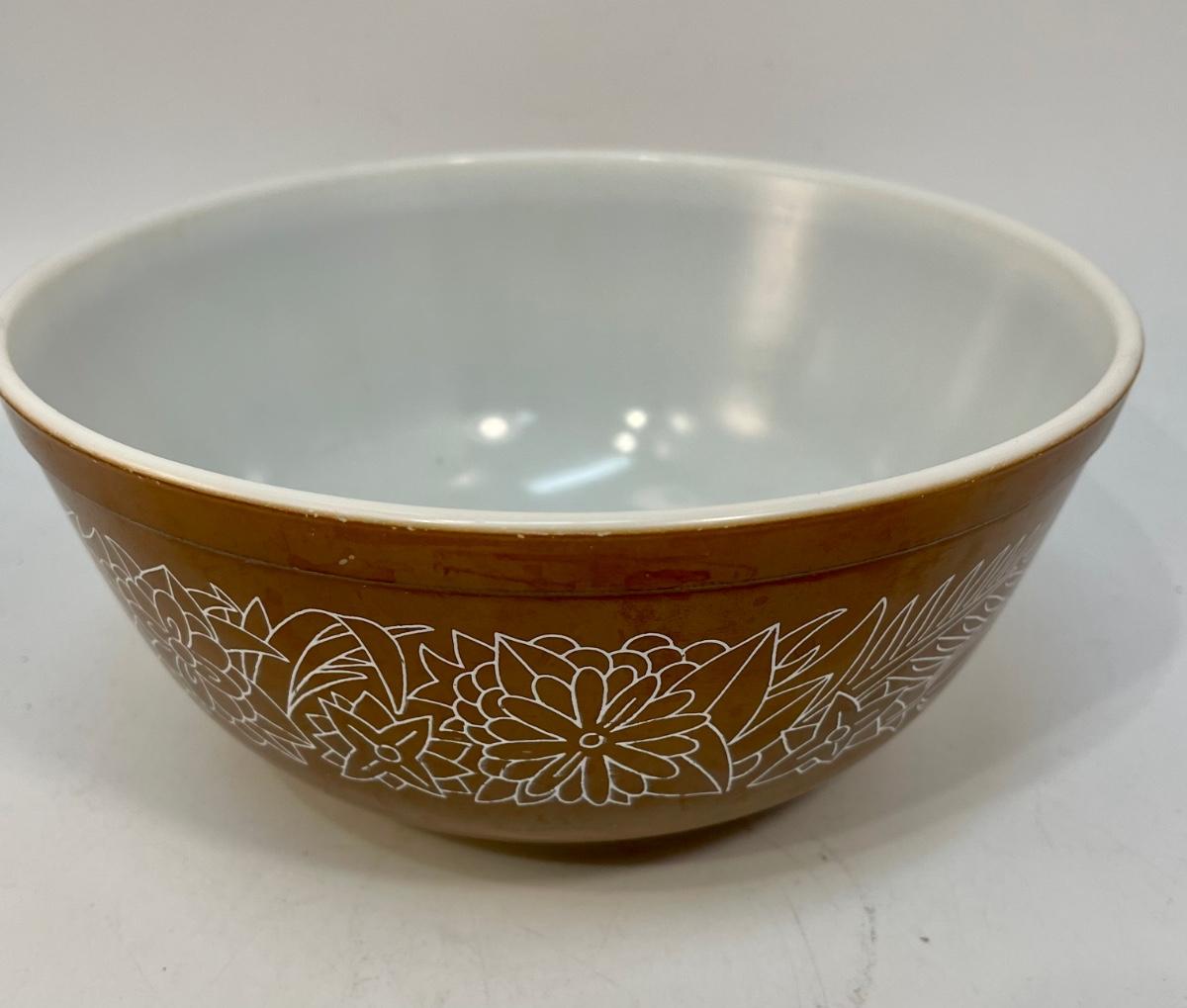 "Woodland" Pyrex Bowl, brown & white, 2.5 qt #403