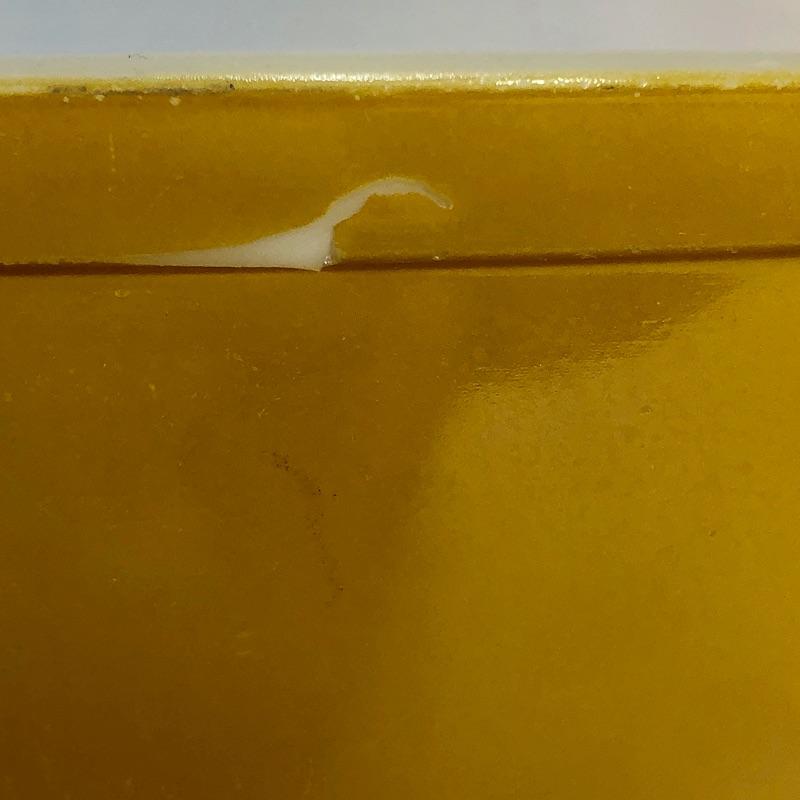 Finish worn on one side near rim of gold bowl. Shown in photos.