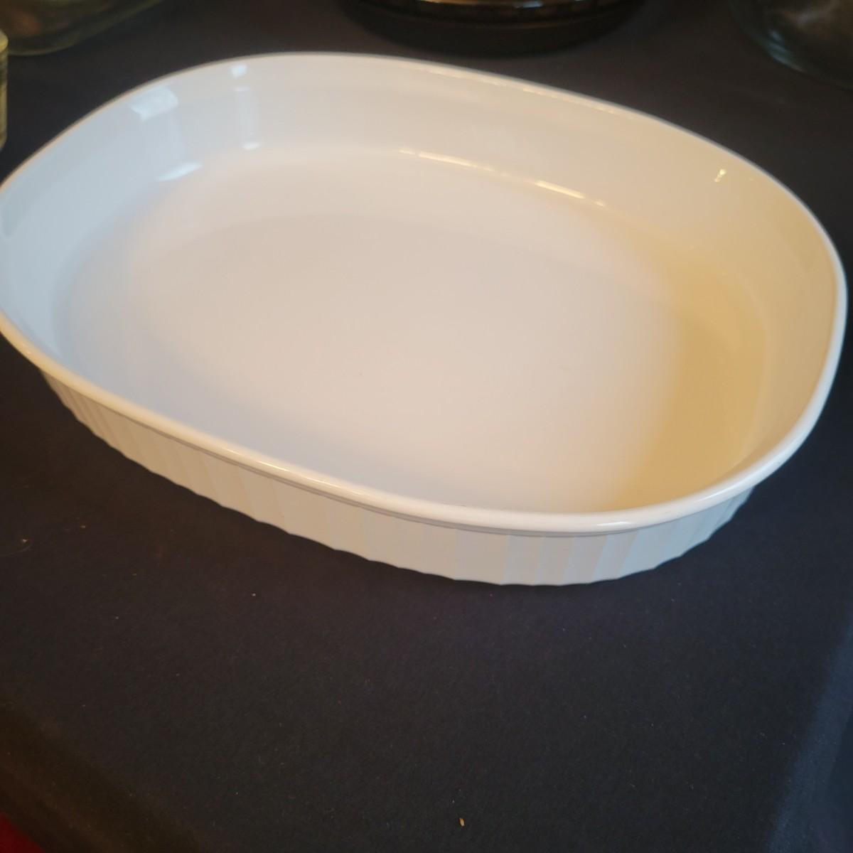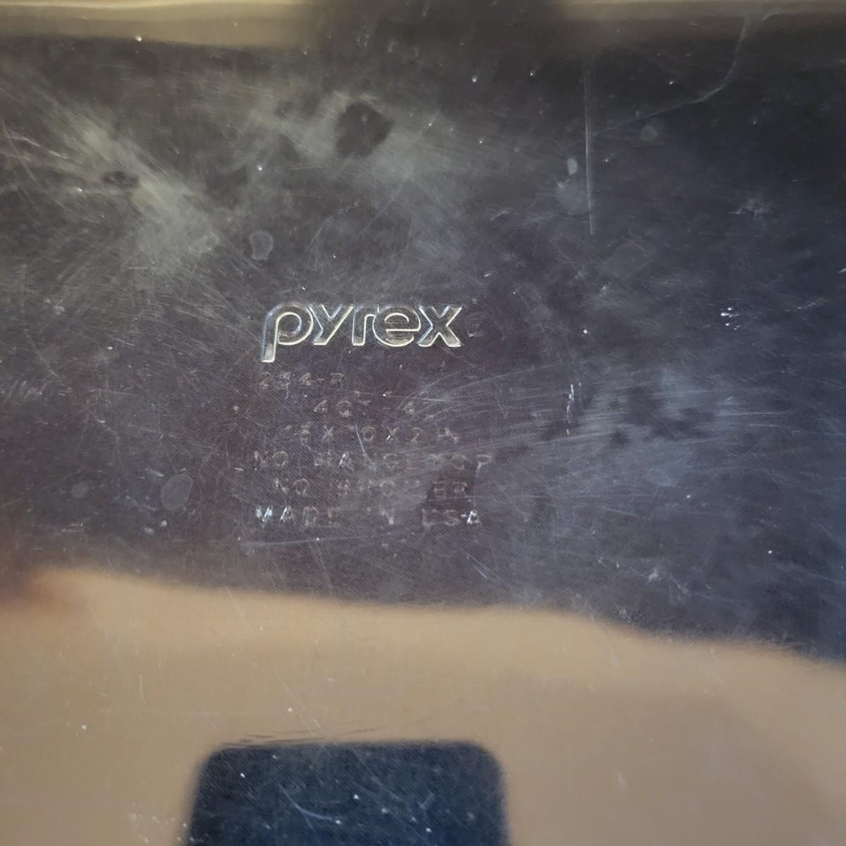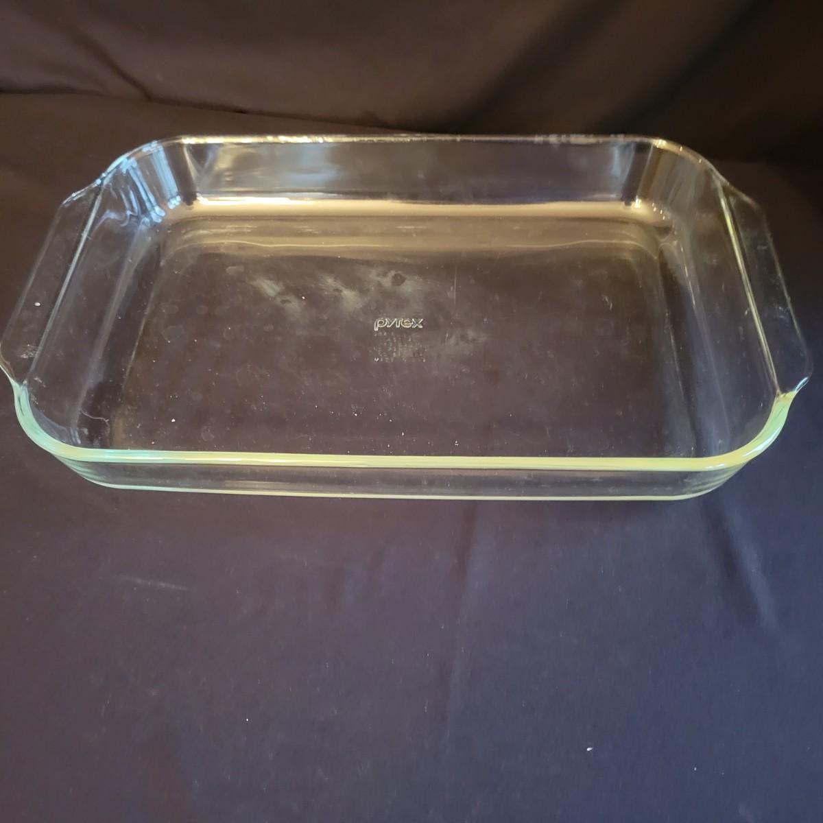 An assortment of baking dishes in a variety of shapes and sizes manufactured by Pyrex, Corning and Anchor. The largest Pyrex baking dish measures approximately 17.5" x 10.5" x 2.25"H. Dishes have no chips, but some have minor scratches or some clouding. Local pickup only