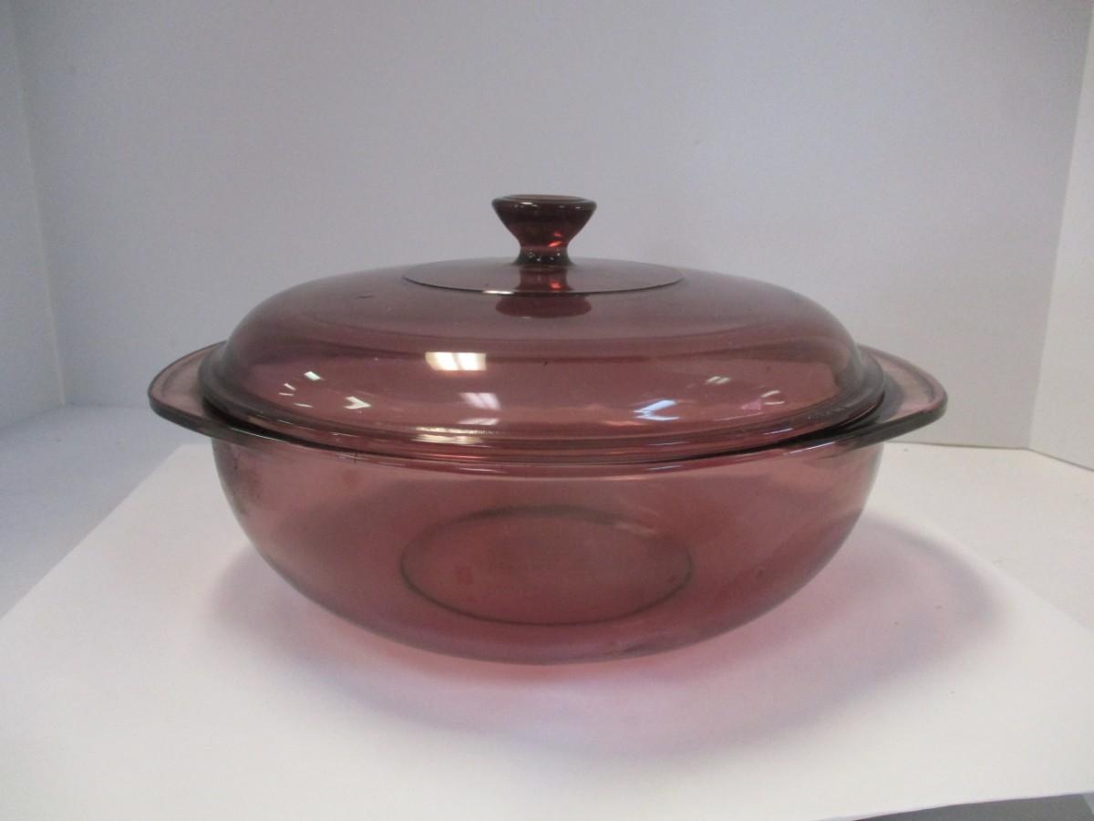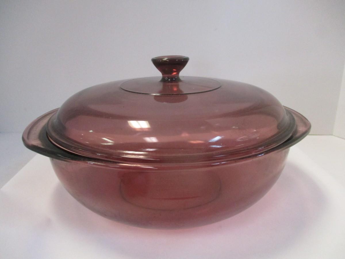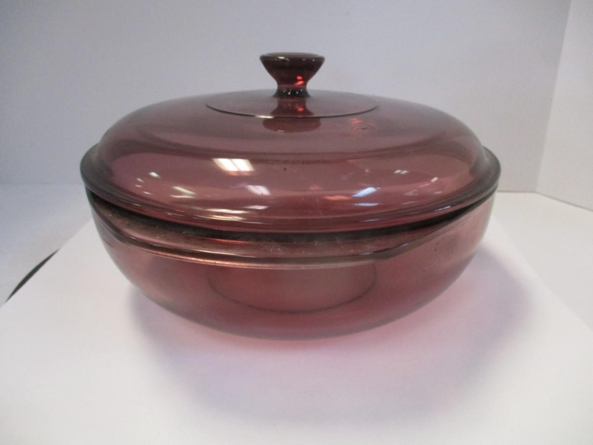 Pyrex Corning Cranberry Casserole Dish With Lid & 2 Handles