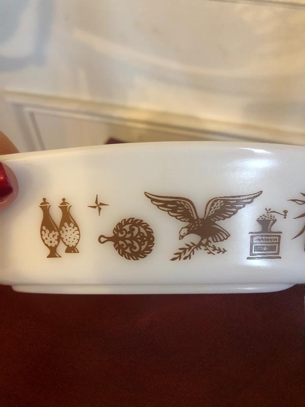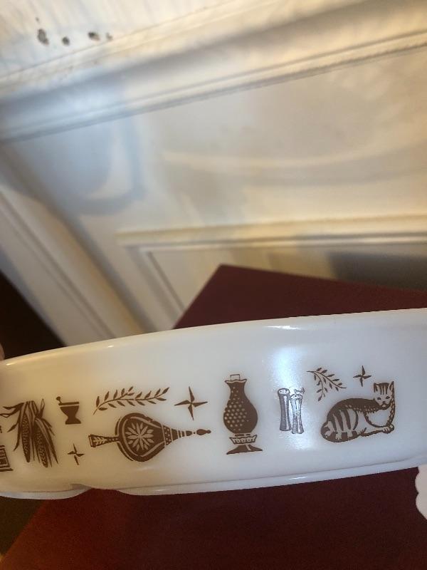 Pyrex divided dish white with brown