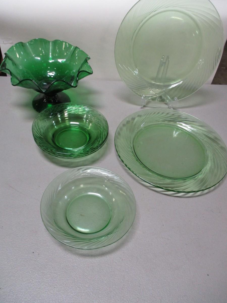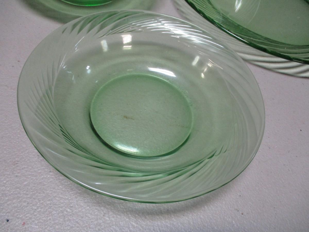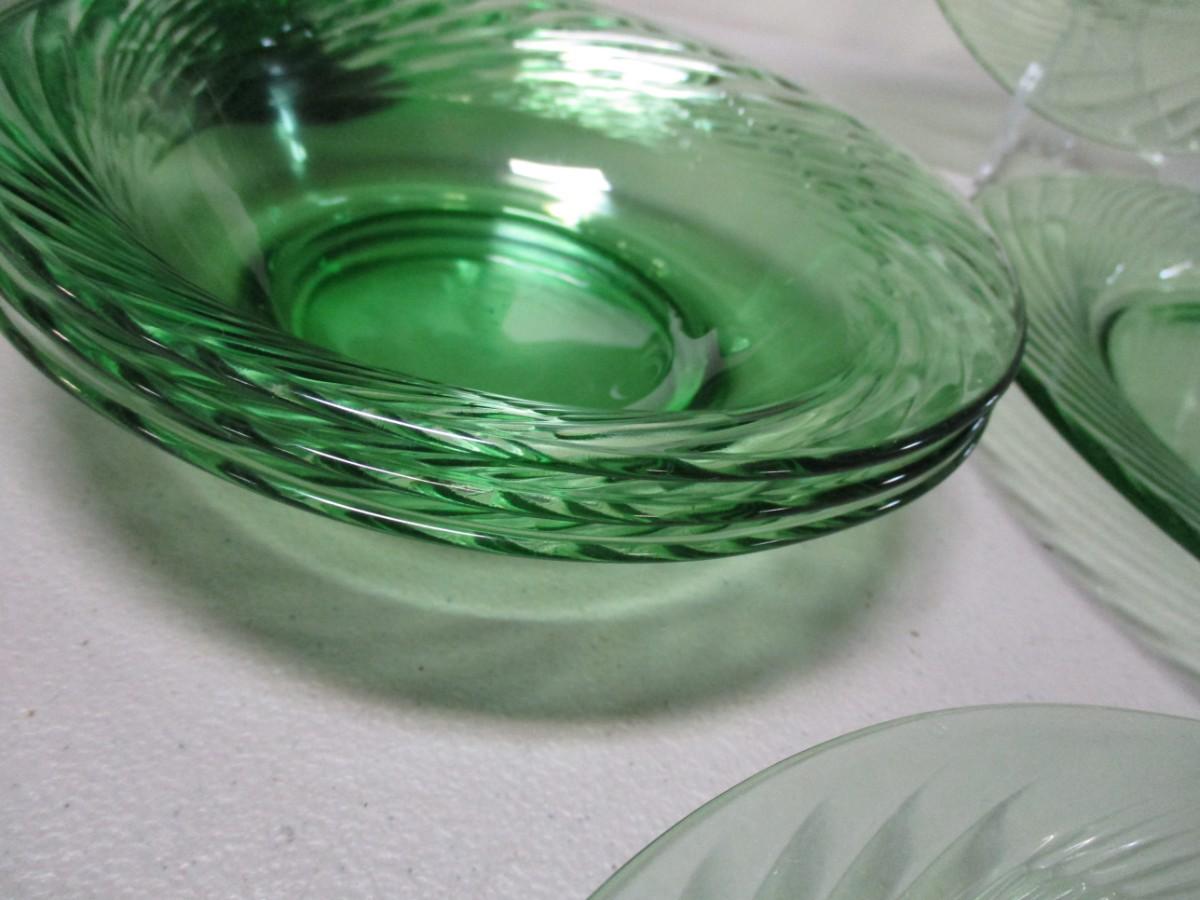 Pyrex Festiva Spring Green Swirl Glass Plates & Candy Dish