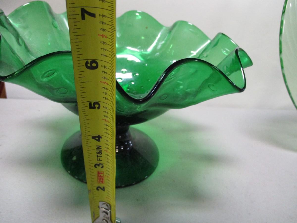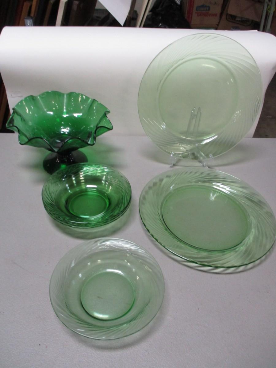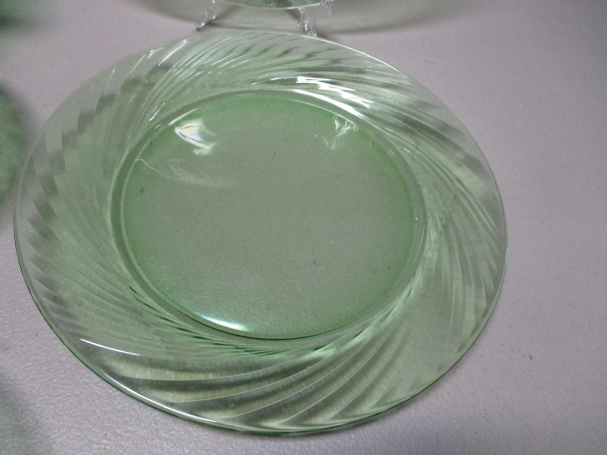Pyrex Festiva Spring Green Swirl Glass Plates & Candy Dish