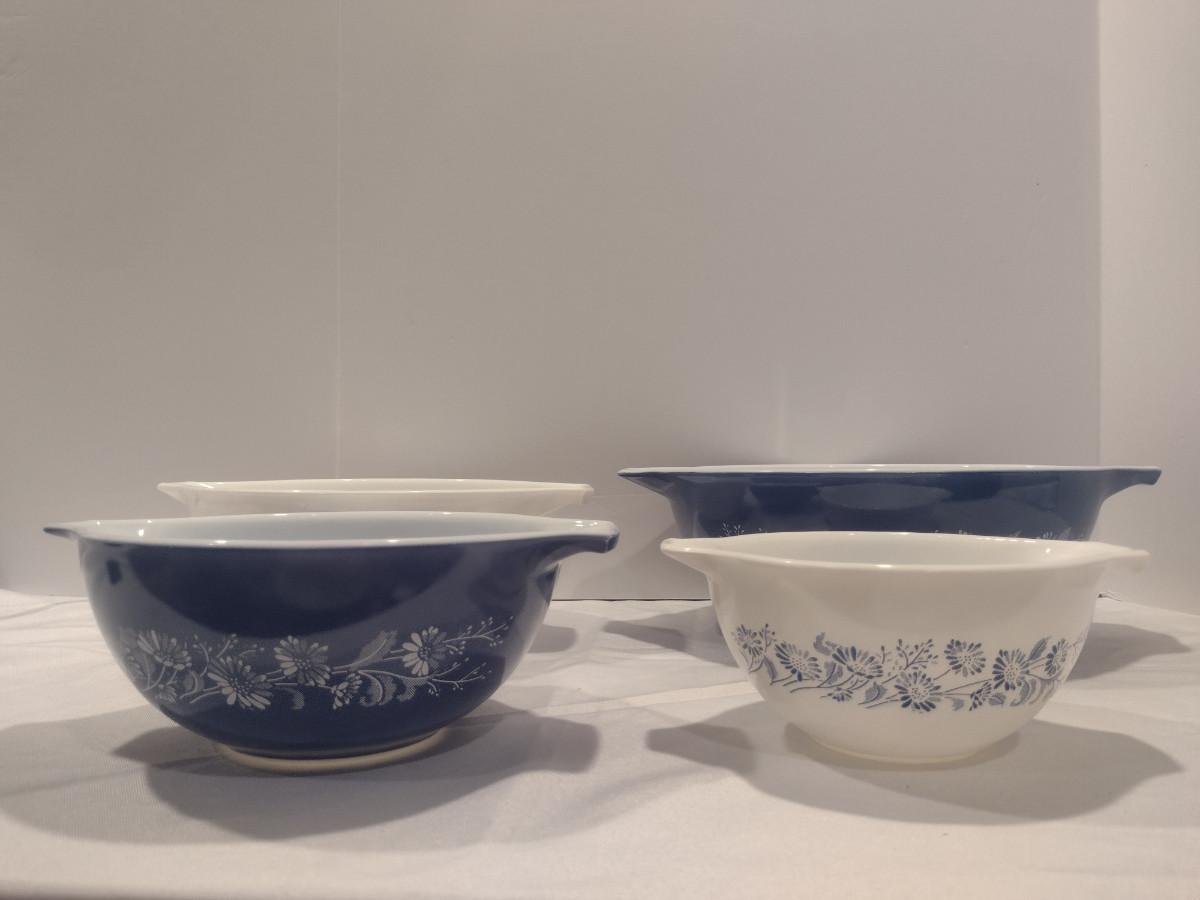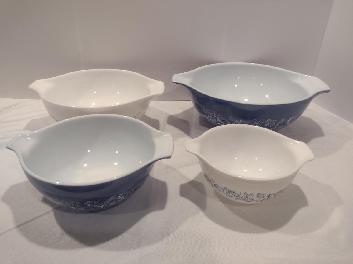 Pyrex Four Piece Nesting Mixing Bowl Set- Colonial Mist Cinderella Pattern