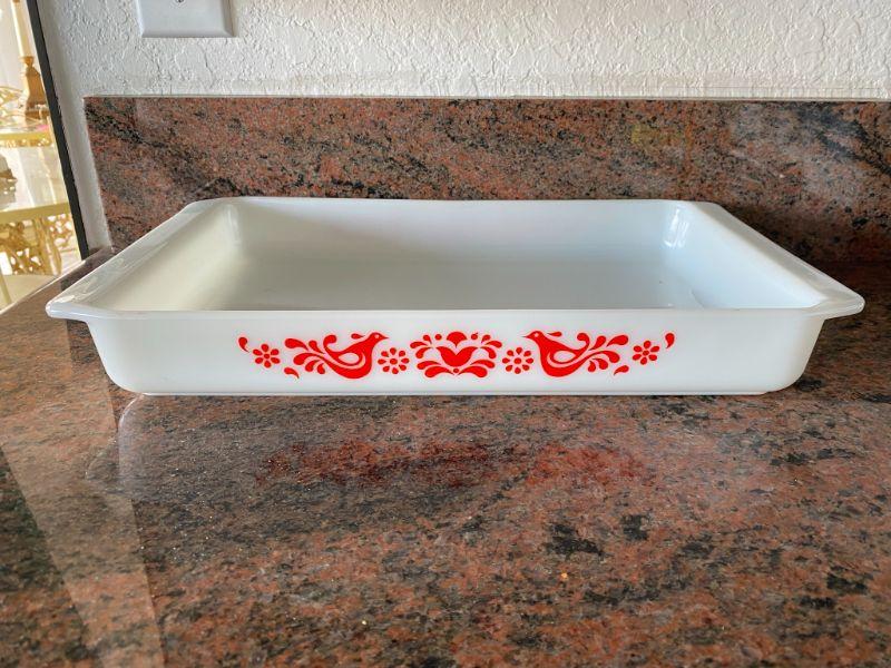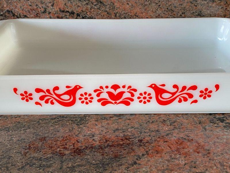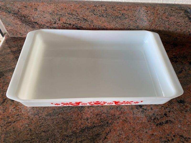 Pyrex Friendship Red Bird Lasagna Milk Glass Baking Pan 933 13.5x8.75x1.75 YD#022-0060