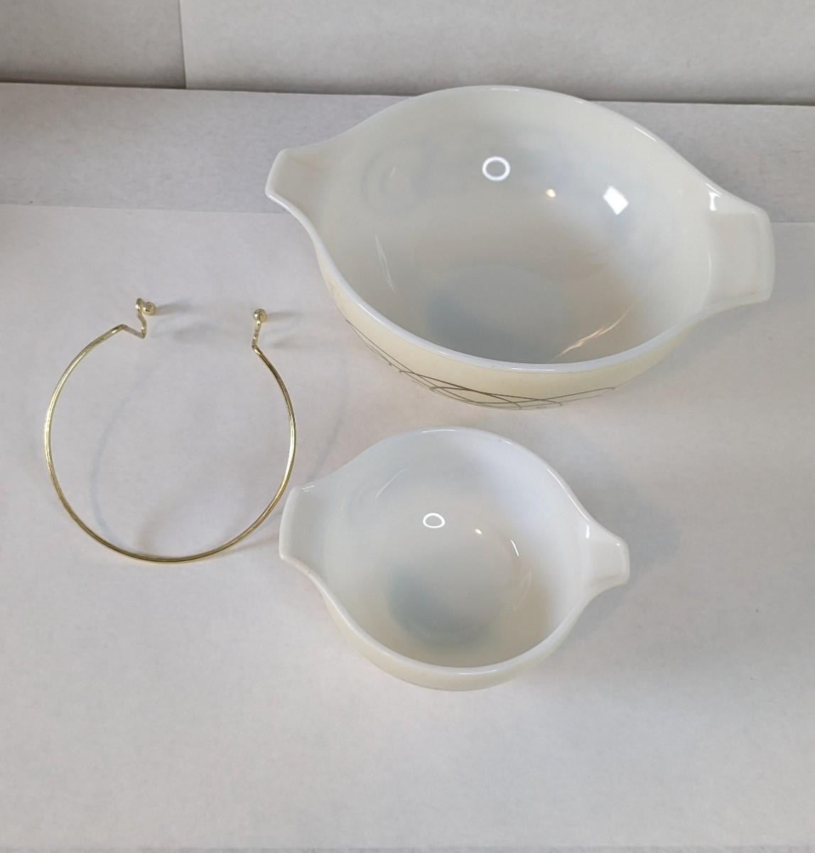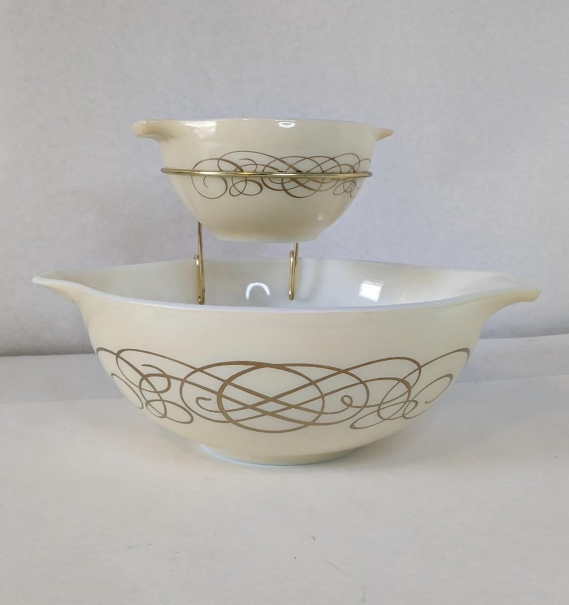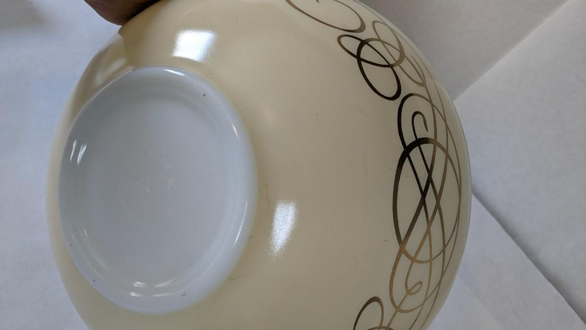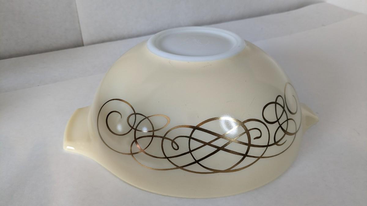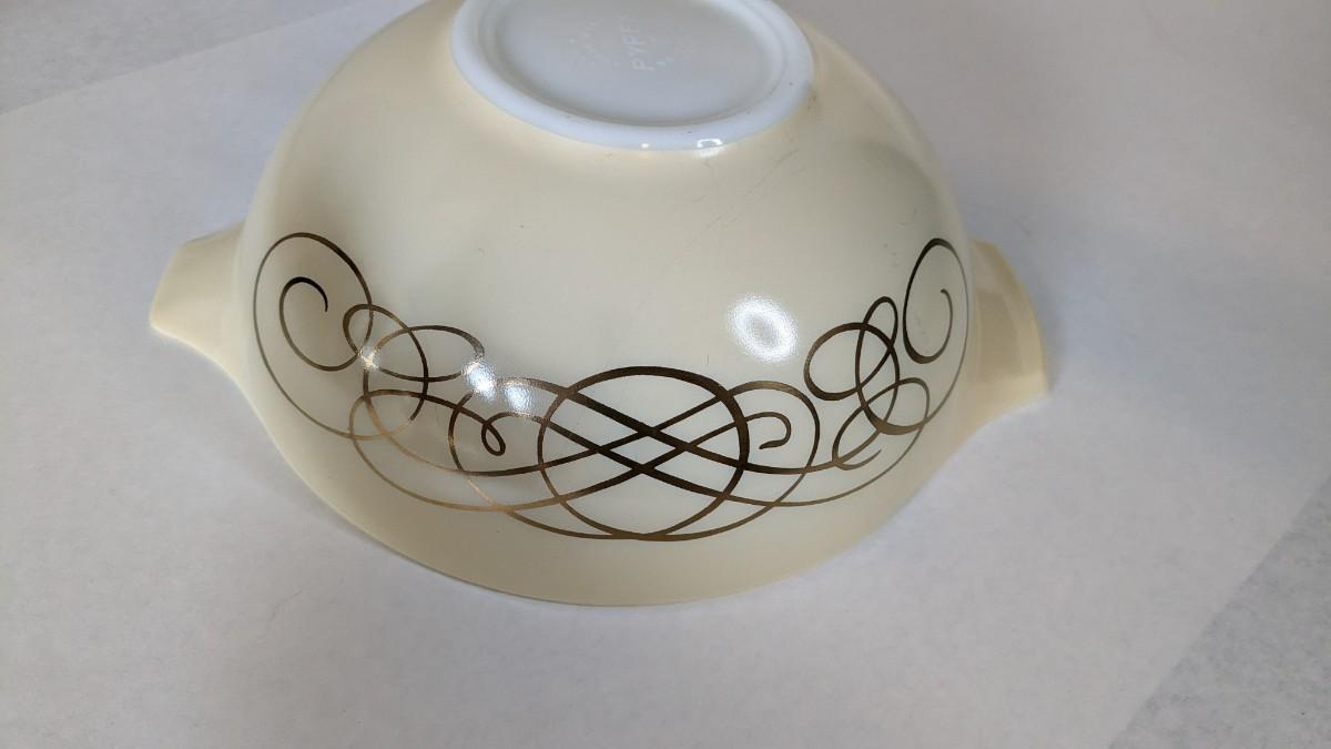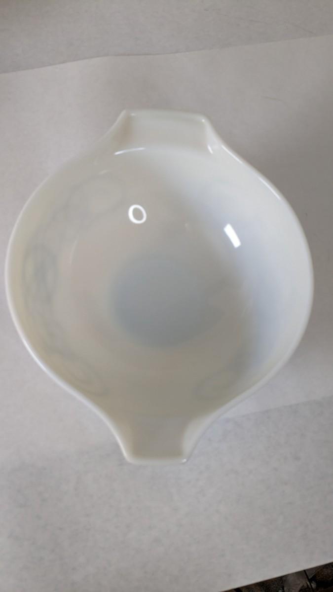 a very hard to find set you'll find this one in fantastic condition with original arm. Very light scuffs are found to exterior with a maximum of 5 flea bites per bowl. Scroll is as shiny as ever with no chips or cracks noted.
