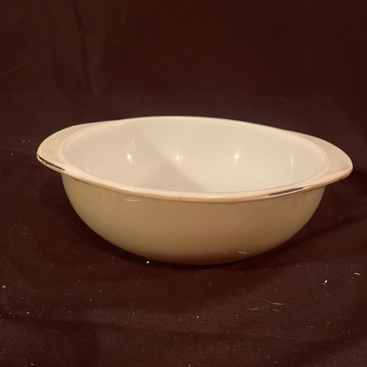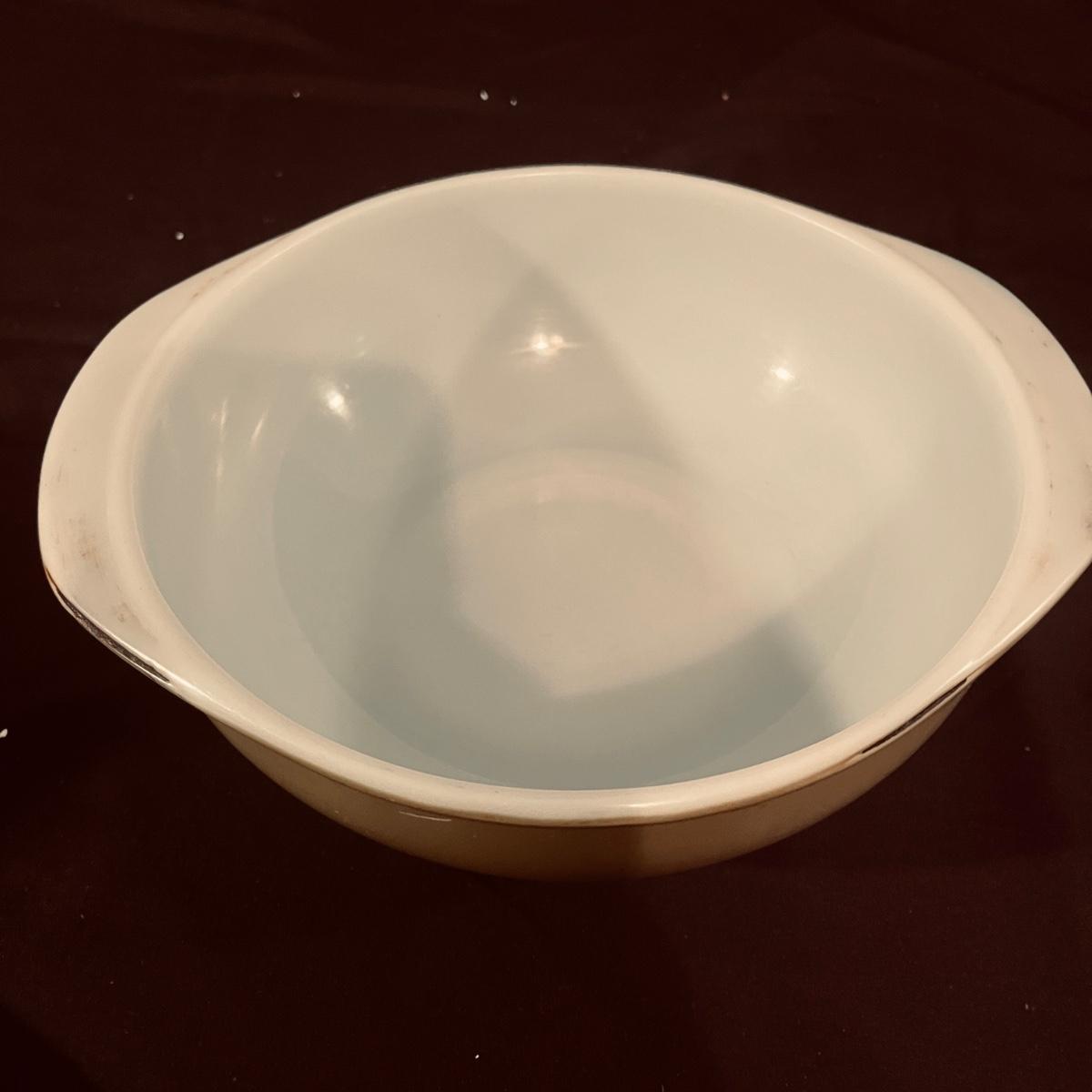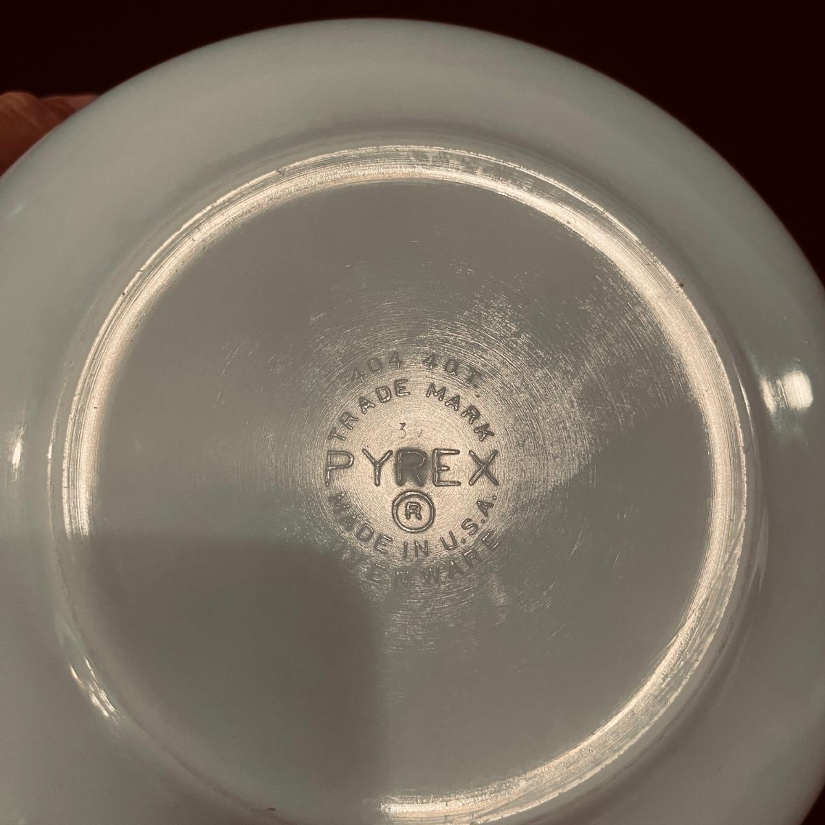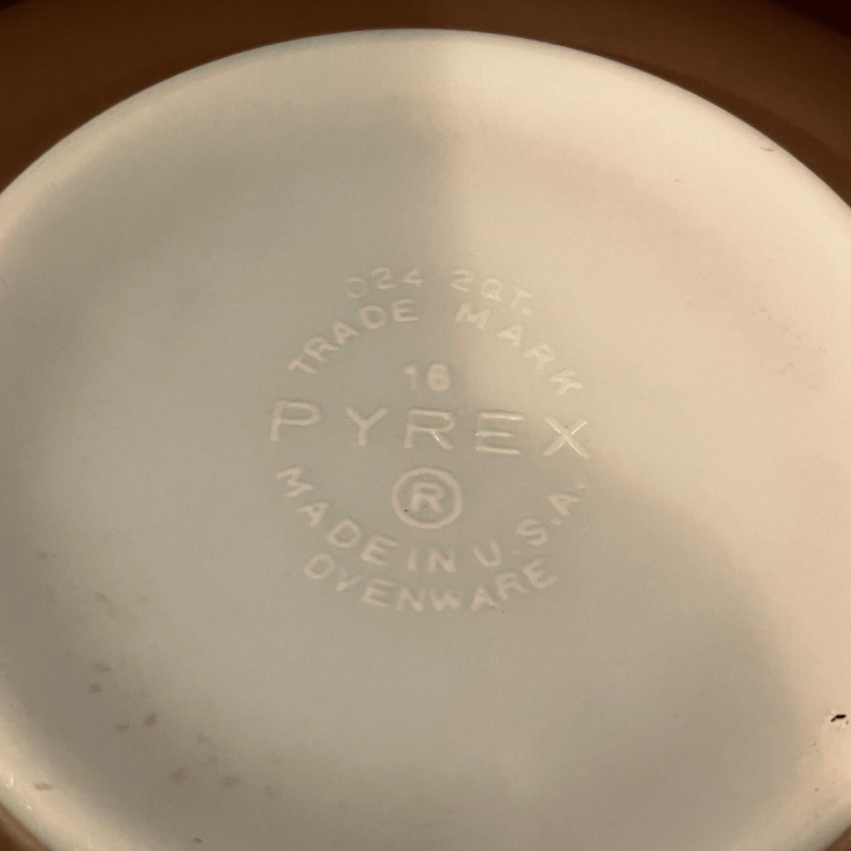 Lot includes a Pyrex mixing bowl with the dot pattern, green Pyrex bowl and a clear Pyrex jar with plastic lid. Dot bowl measures 10.5” x 4.5”H and has some scratches, see pictures.