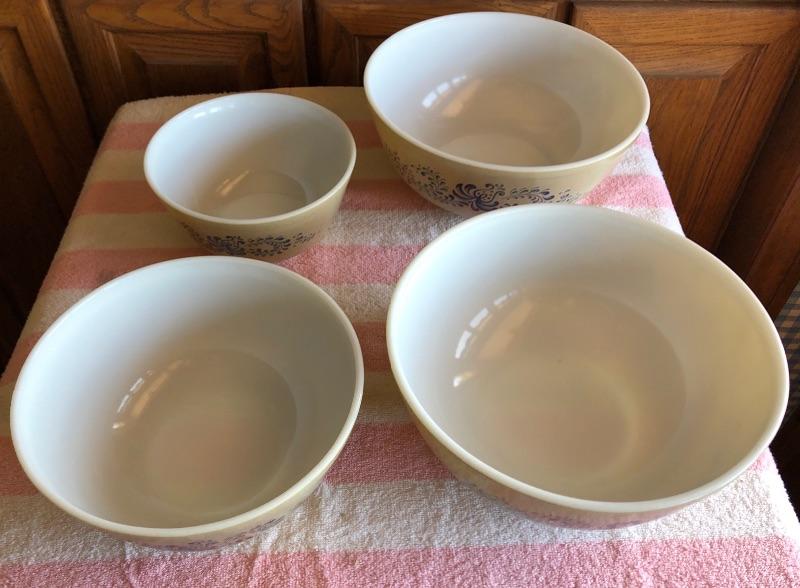 Pyrex Homestead 4 piece mixing bowl set. Good condition.