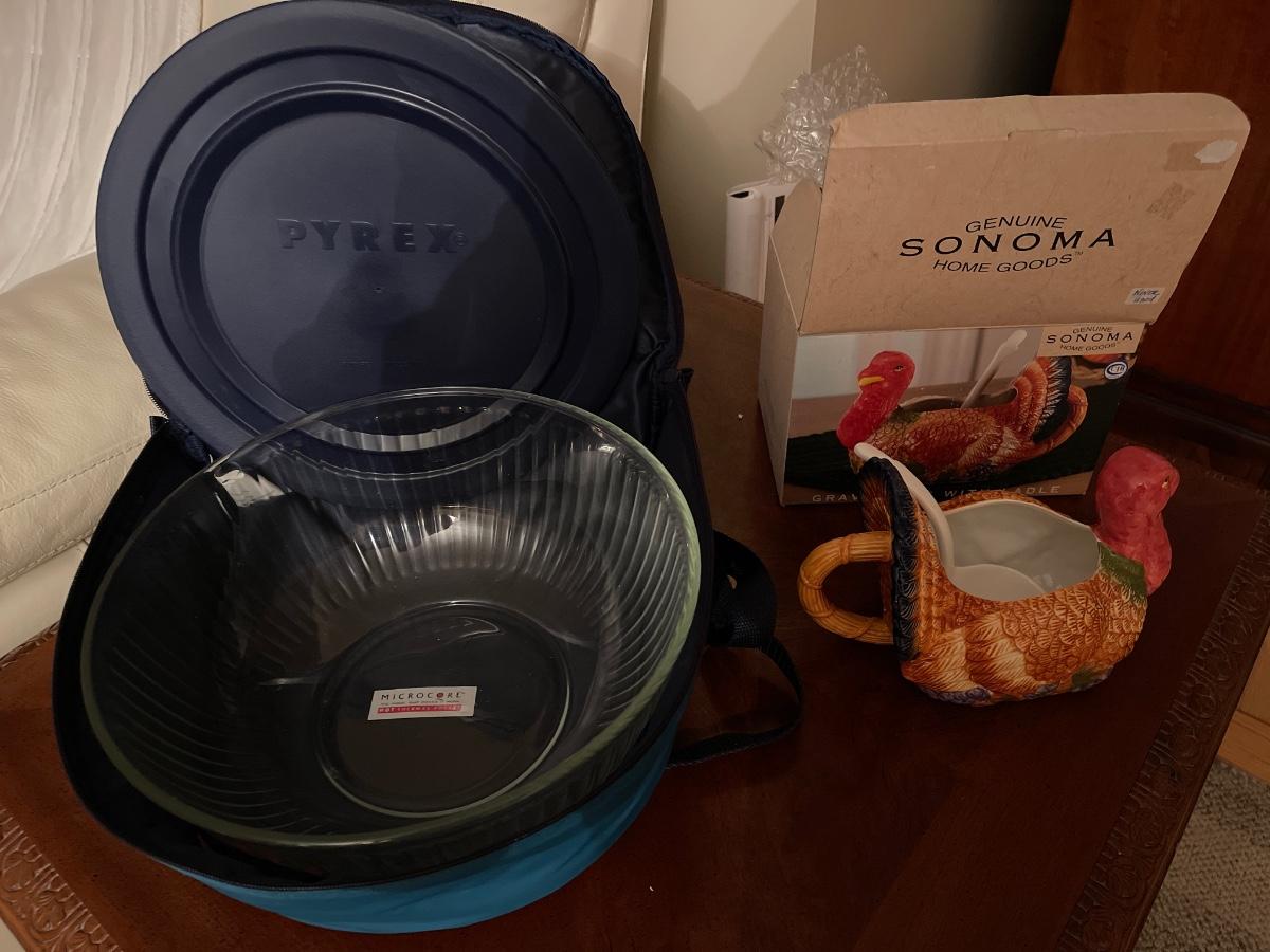 Pyrex portable and turkey gravy bowl