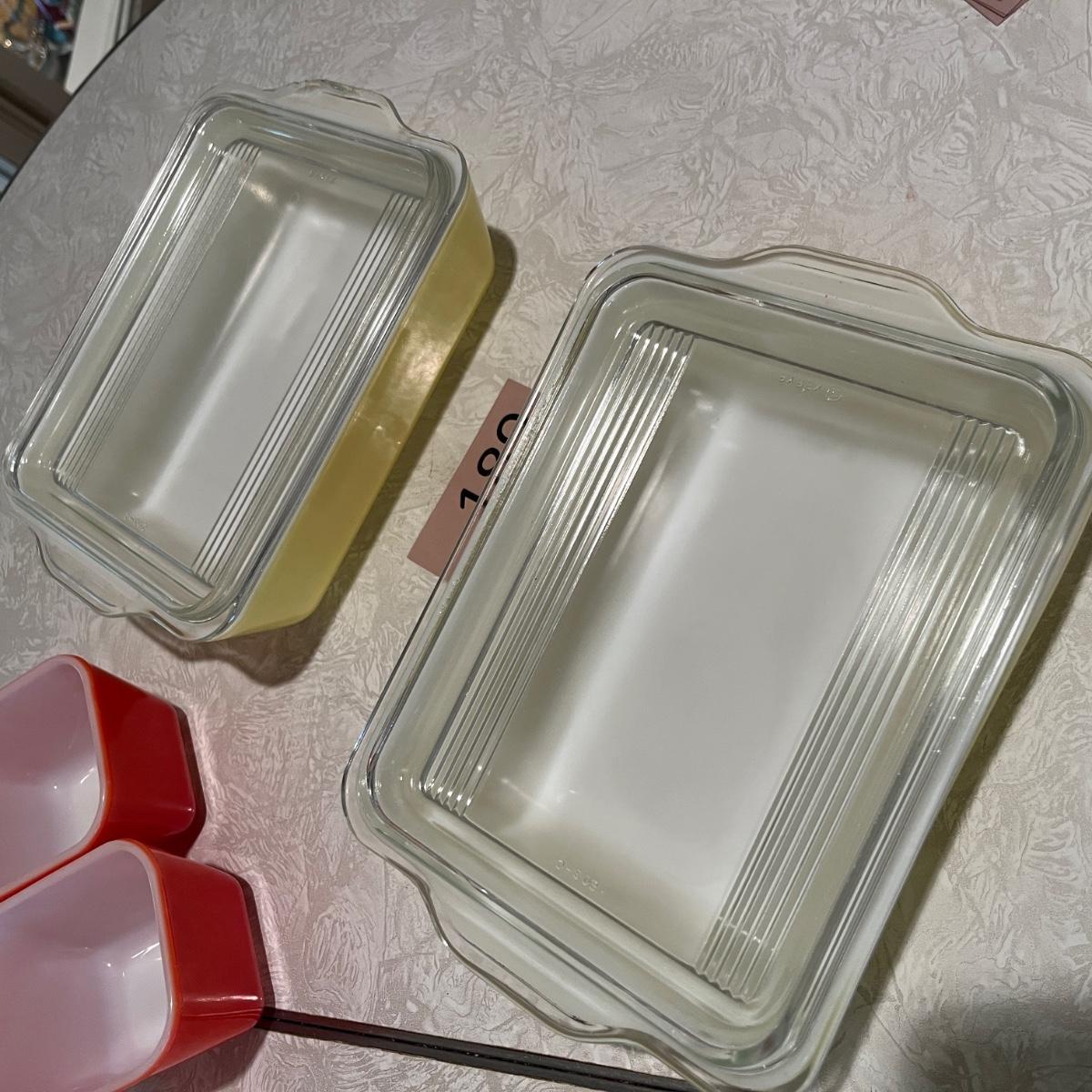 Everything is shiny one large lid has a chipped up corner, a couple of stratches
