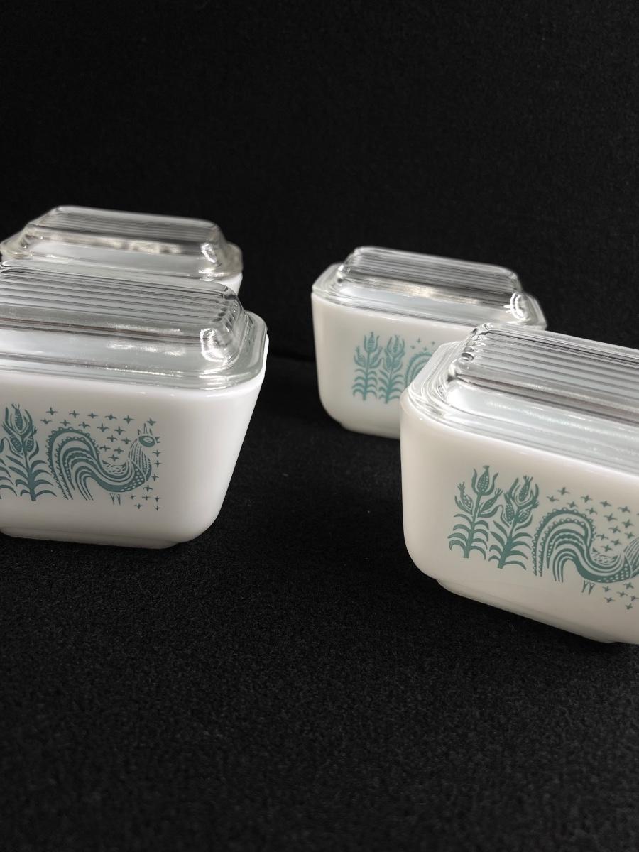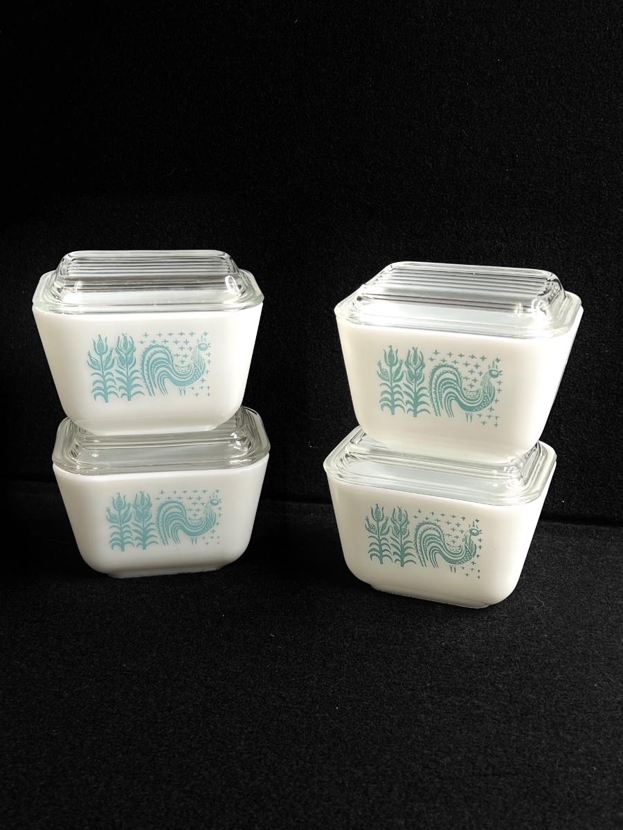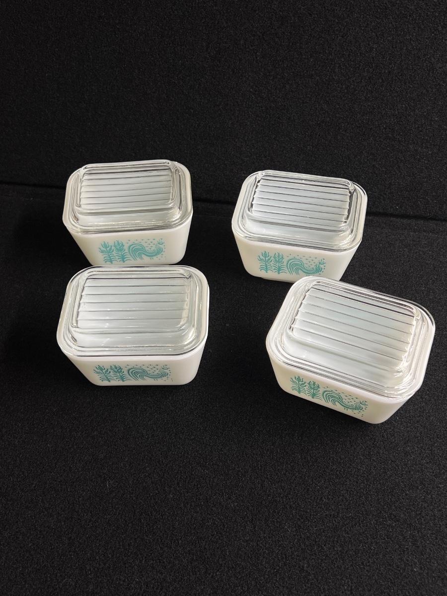 PYREX ~ Four (4) ~ Butterprint" ~Lidded Refrigerator Dishes