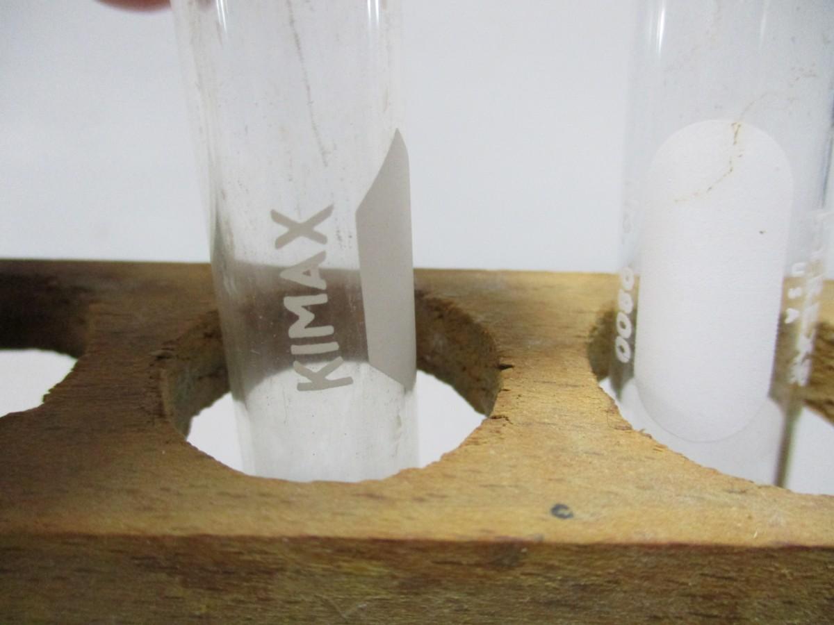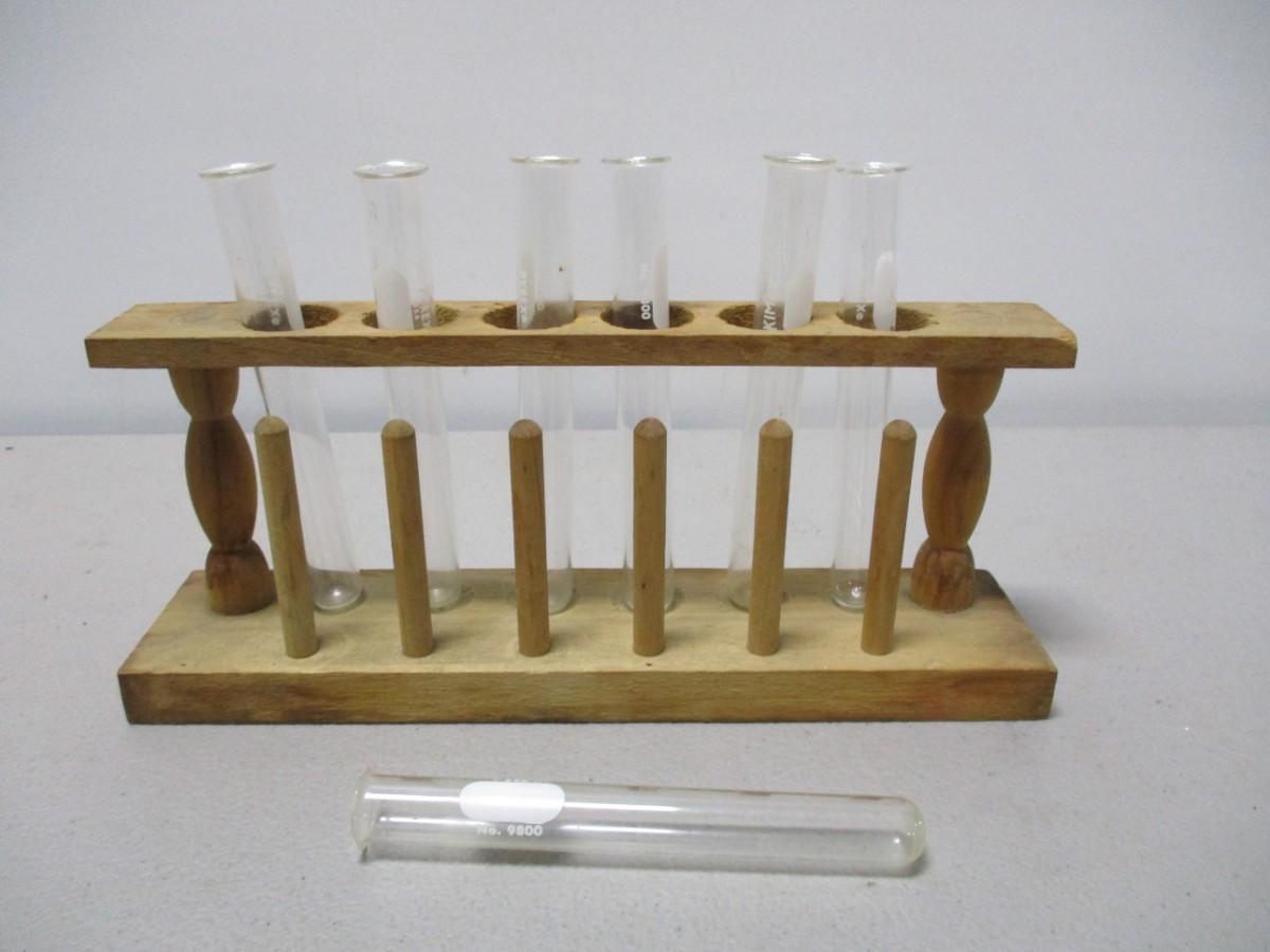 Pyrex & Kimax Test Tubes With Wooden Holder