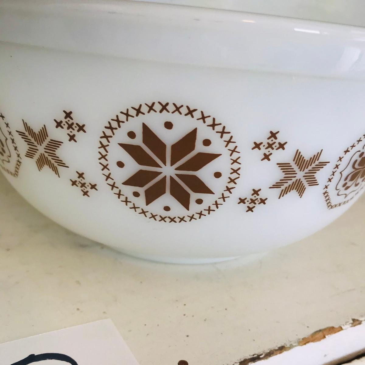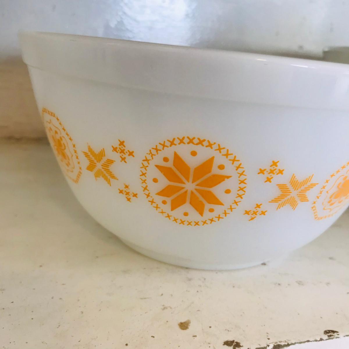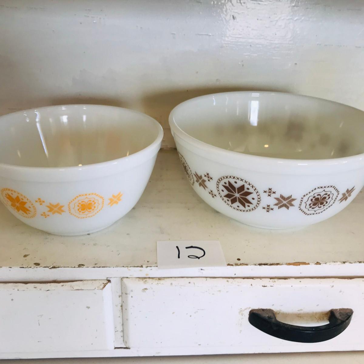 They did several patterning variations on the mixing bowls. This set is the early version. Later the smaller bowls were solid colored. Very nice two bowls! These are the 402 & 403.