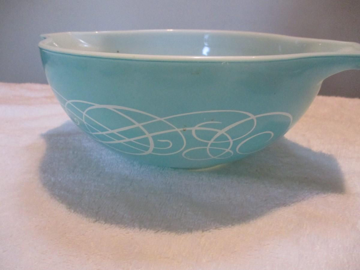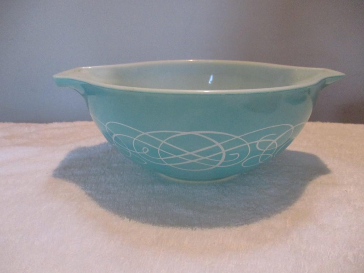 Pyrex Turquoise Scroll 443 2-1/2 qt Cinderella Bowl
