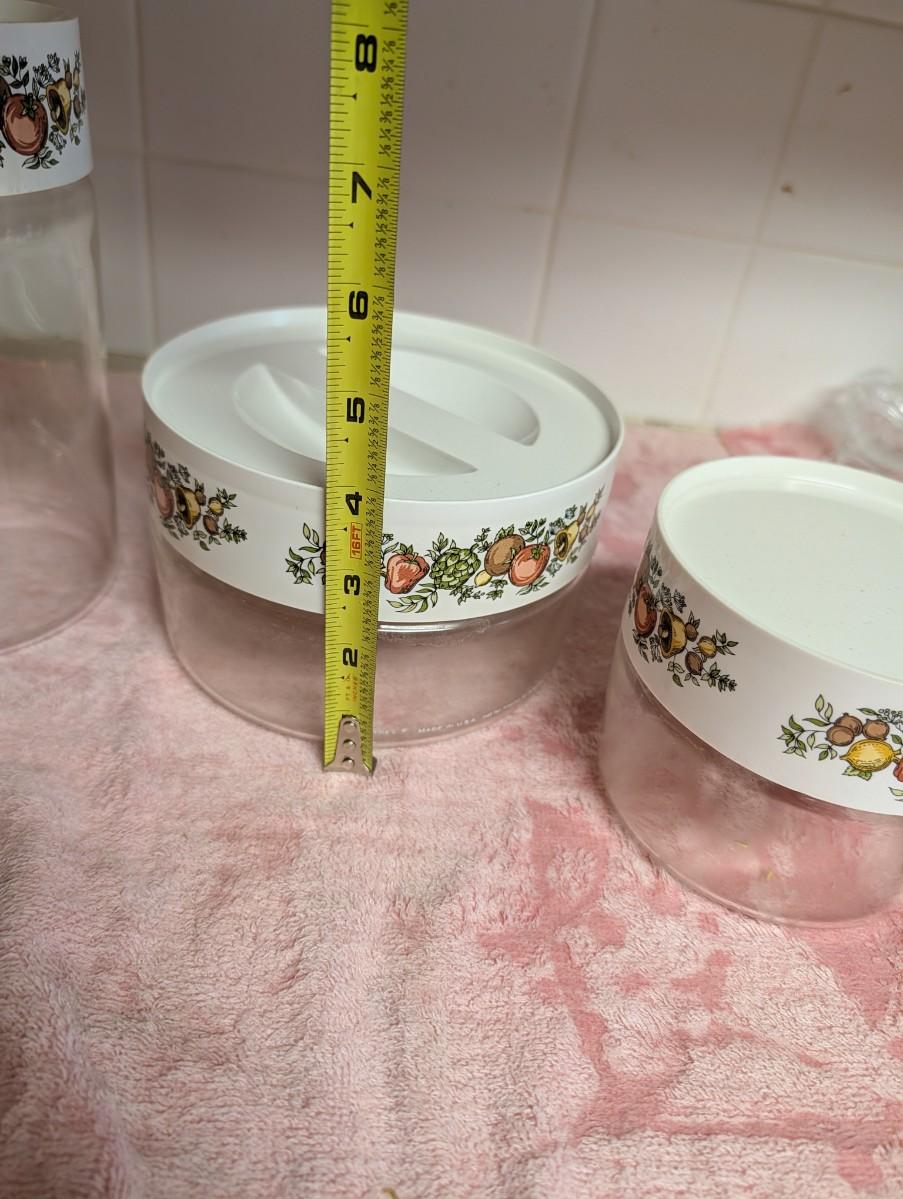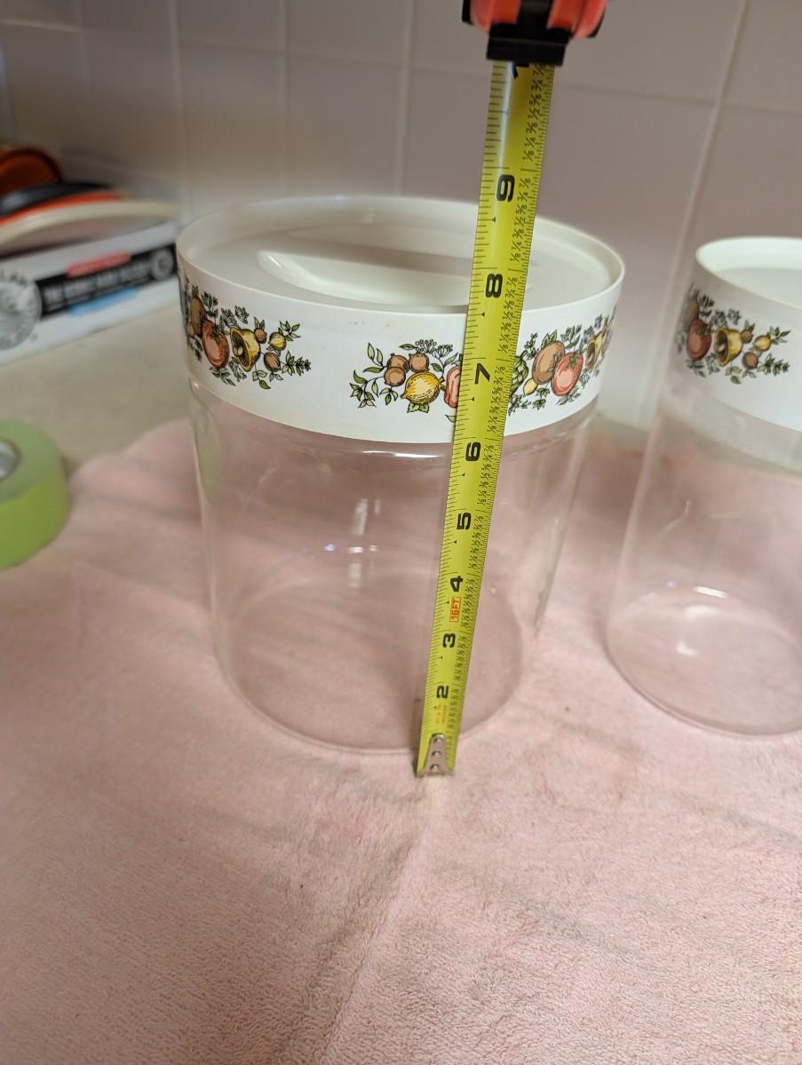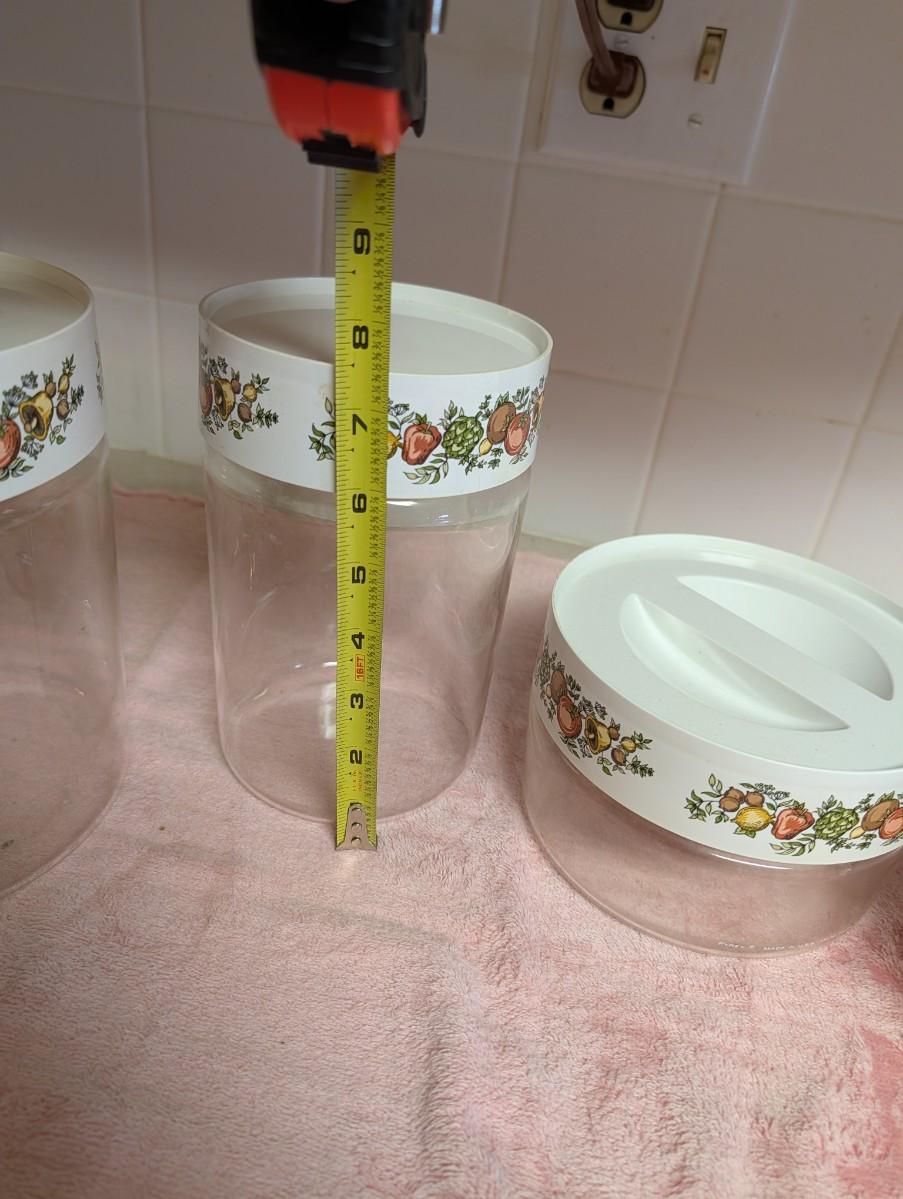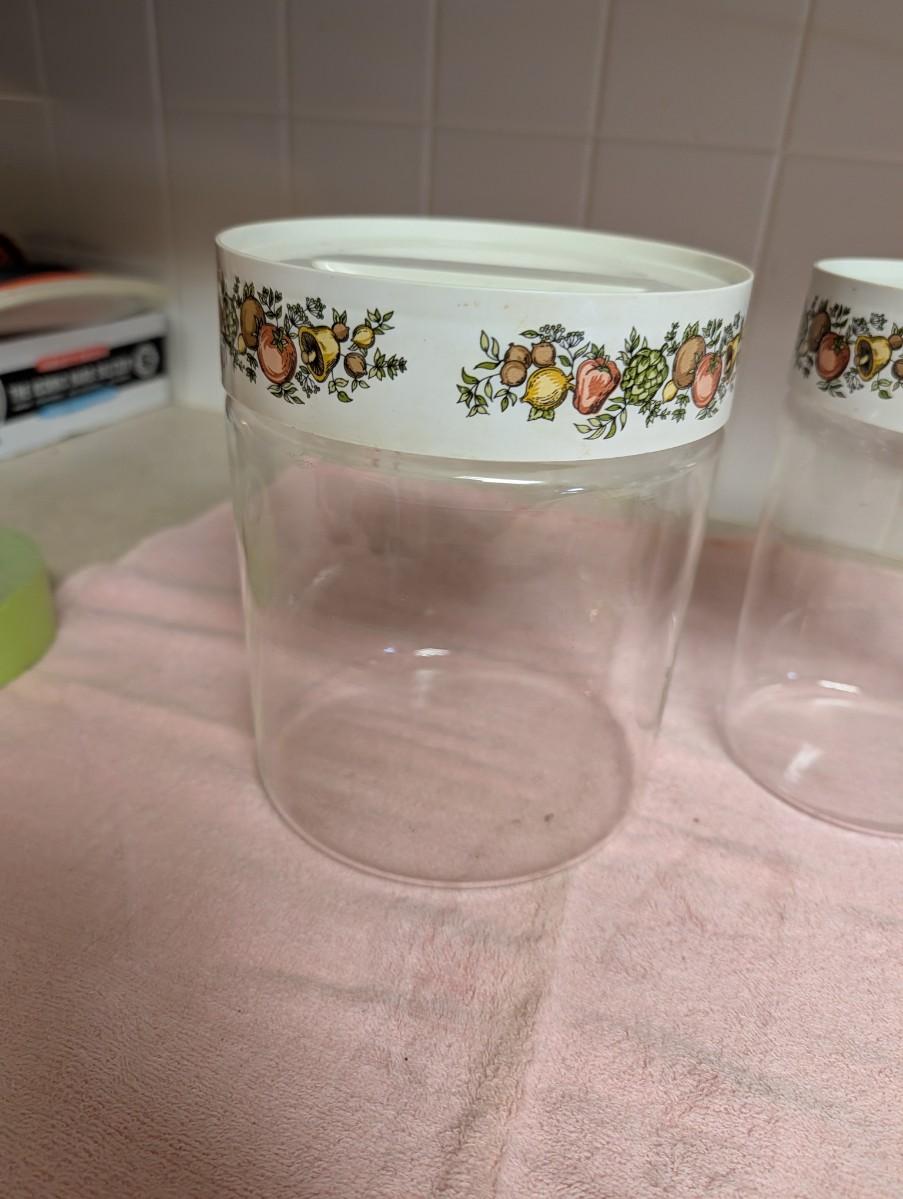 PYREX ware, glass screw on lids. Can be used as canister set.