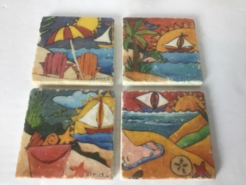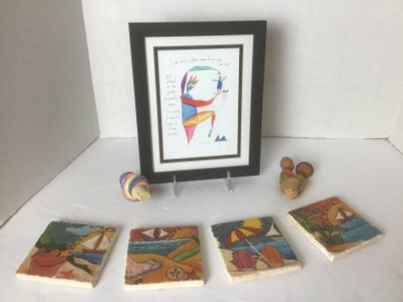 Q - 1260  Signed art by Brian Andreas / Painted Tiles Coasters  / Wine Stoppers