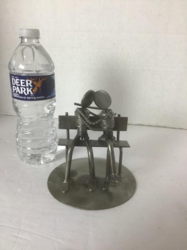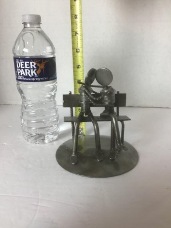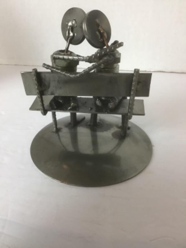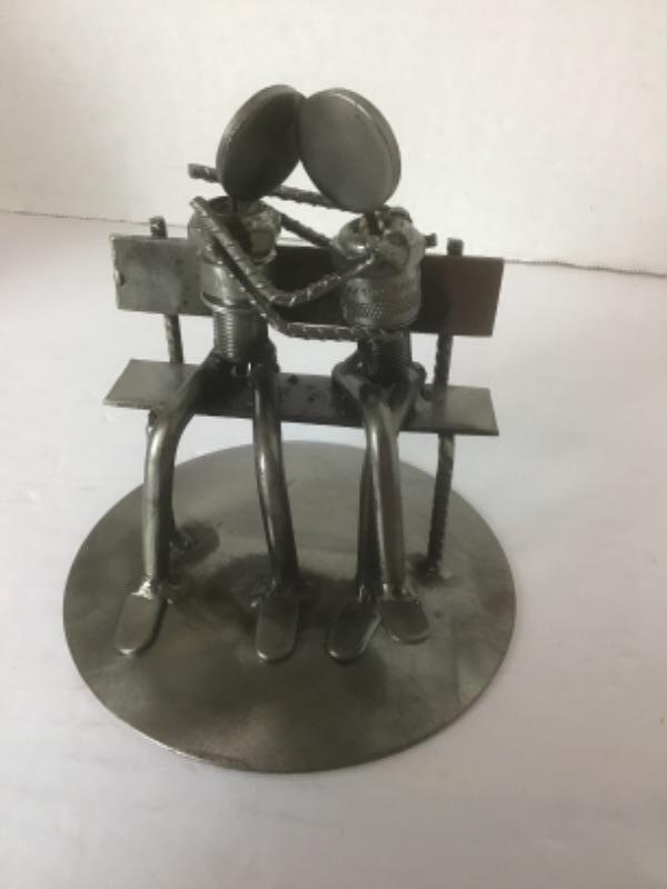 Scrap Metal Sculpture - Couple on Bench, measures 5” Tall