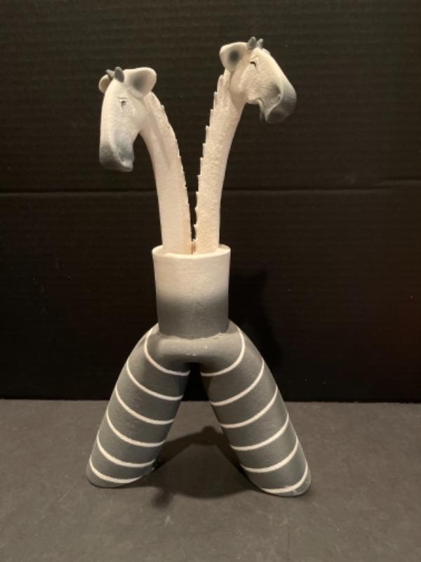Q - 1268 Artisan Signed Double Headed Pottery Giraffe