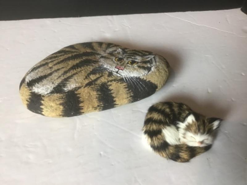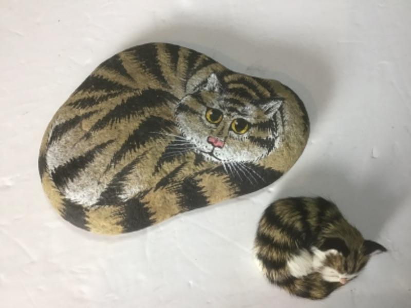 Q - 1273 Stone Painted Sleeping Cat by Mike Dolinger