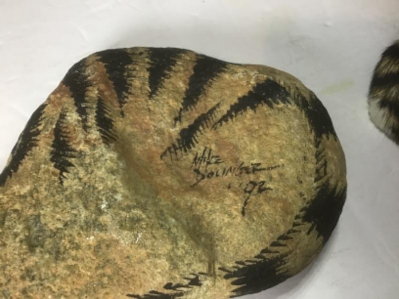 Signed Painted Stone Cat, Signed by Mike Dolinger “˜92 - 7.5” Long x 5” Wide