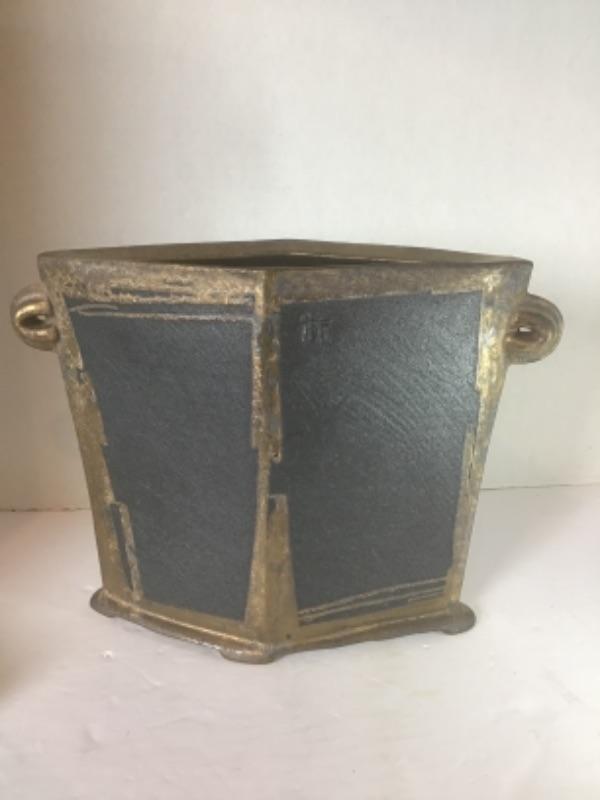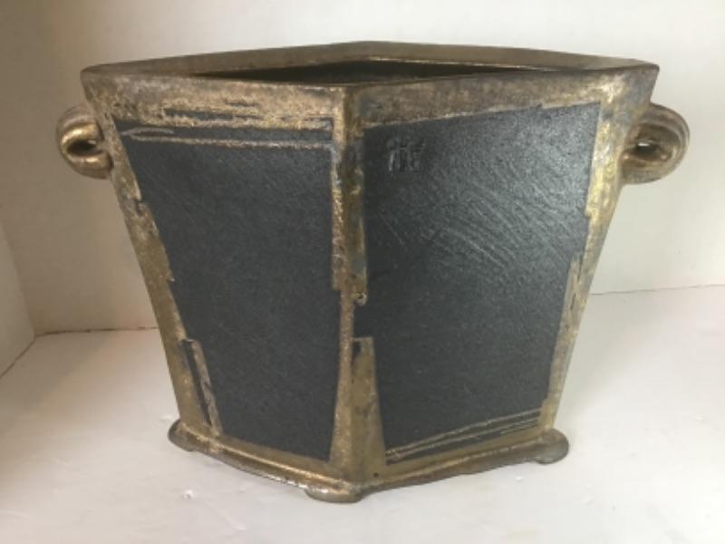 Artisan Stamped Diamond Shaped Pottery Vase in Black and Gold -